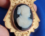 - Victorian Memory Locket Brooch Antique 14k Gold Deco Hard Stone Onyx Cameo Pin