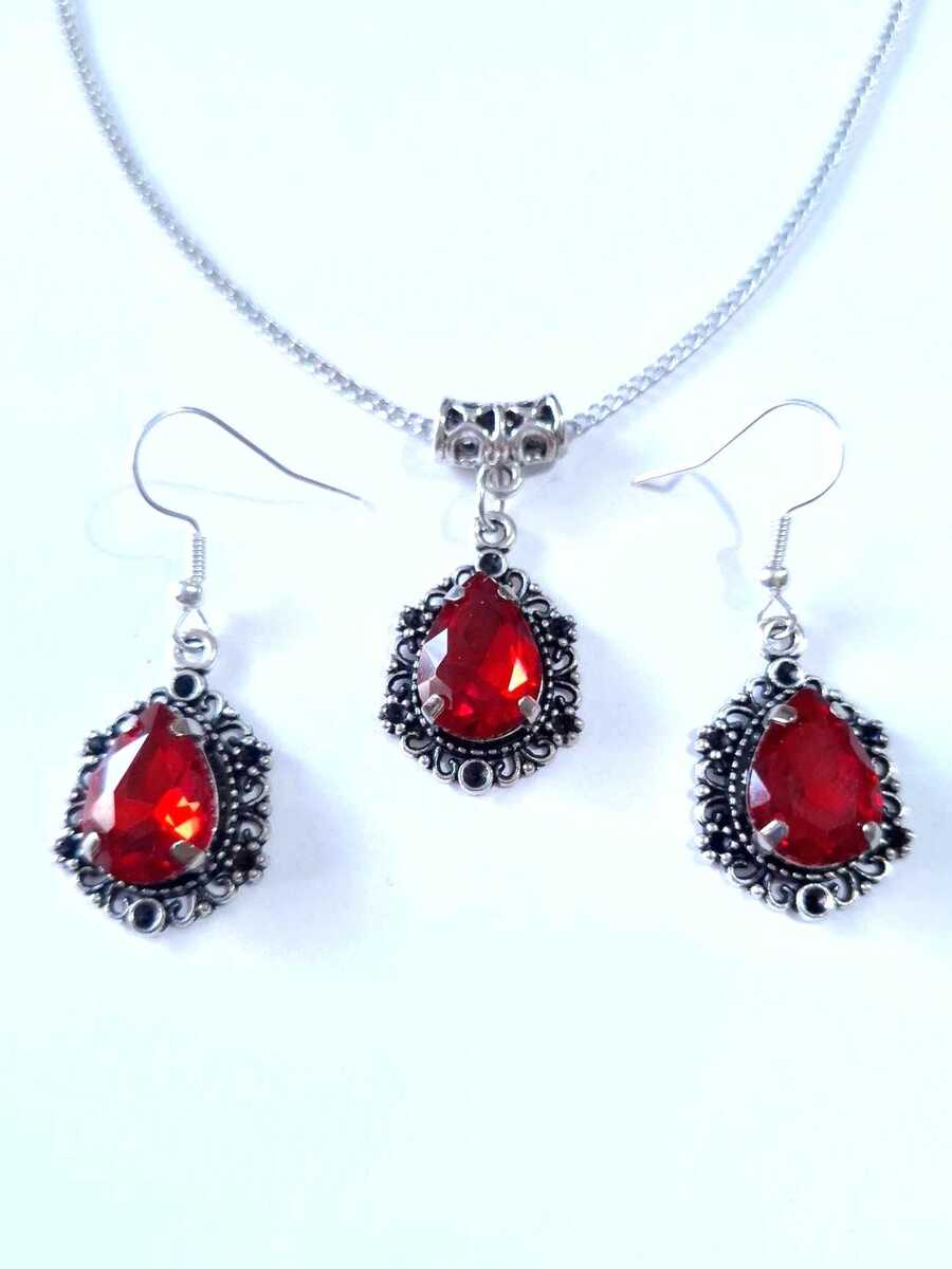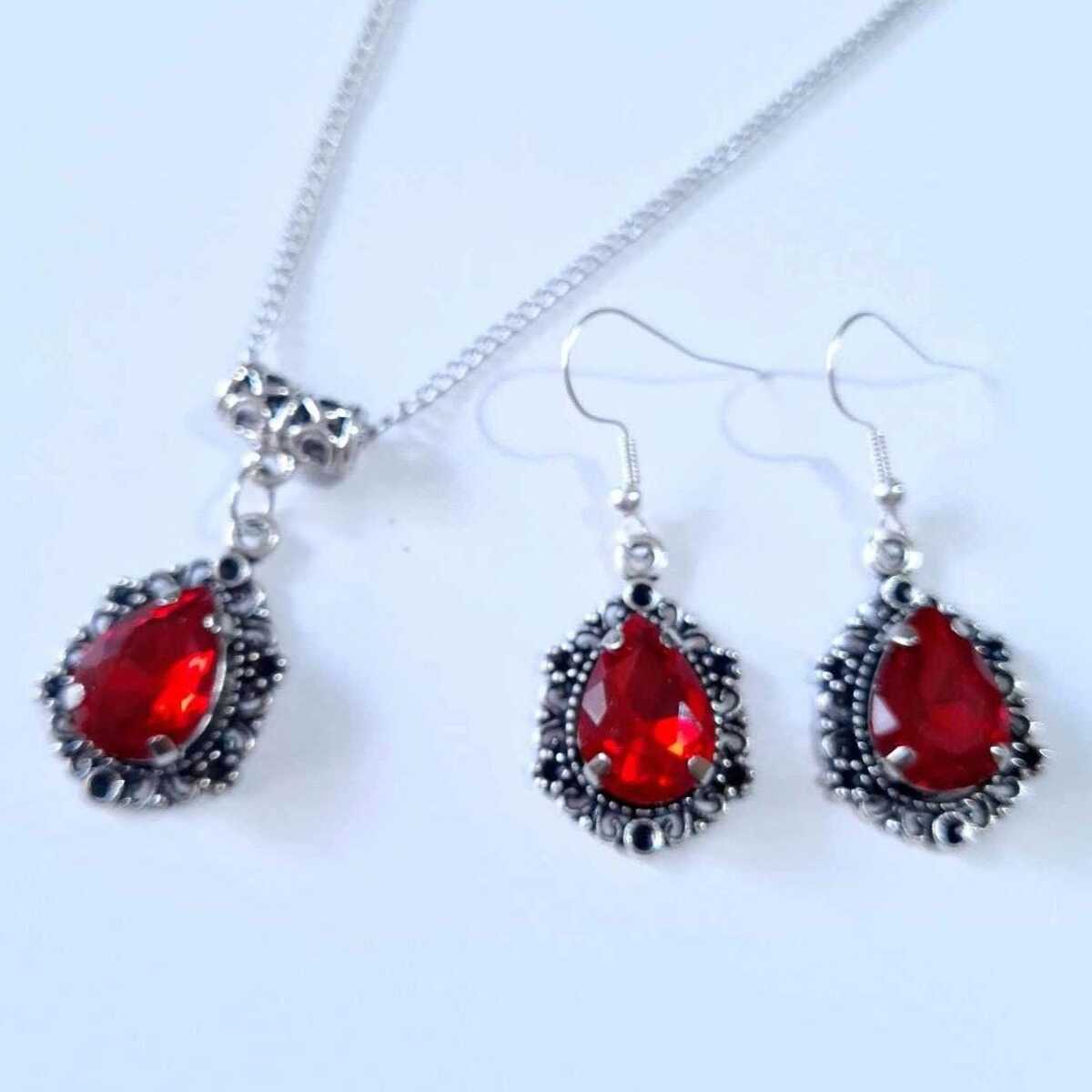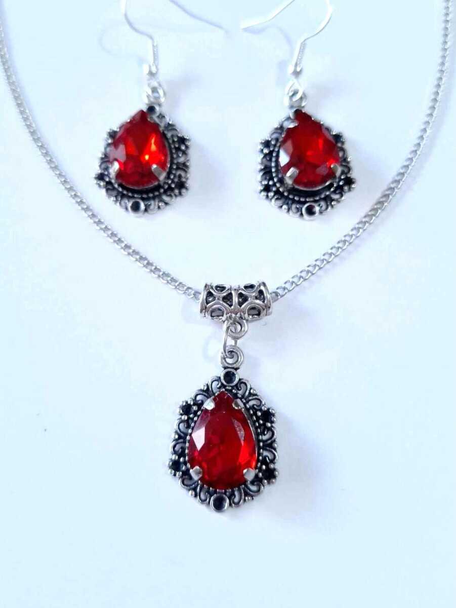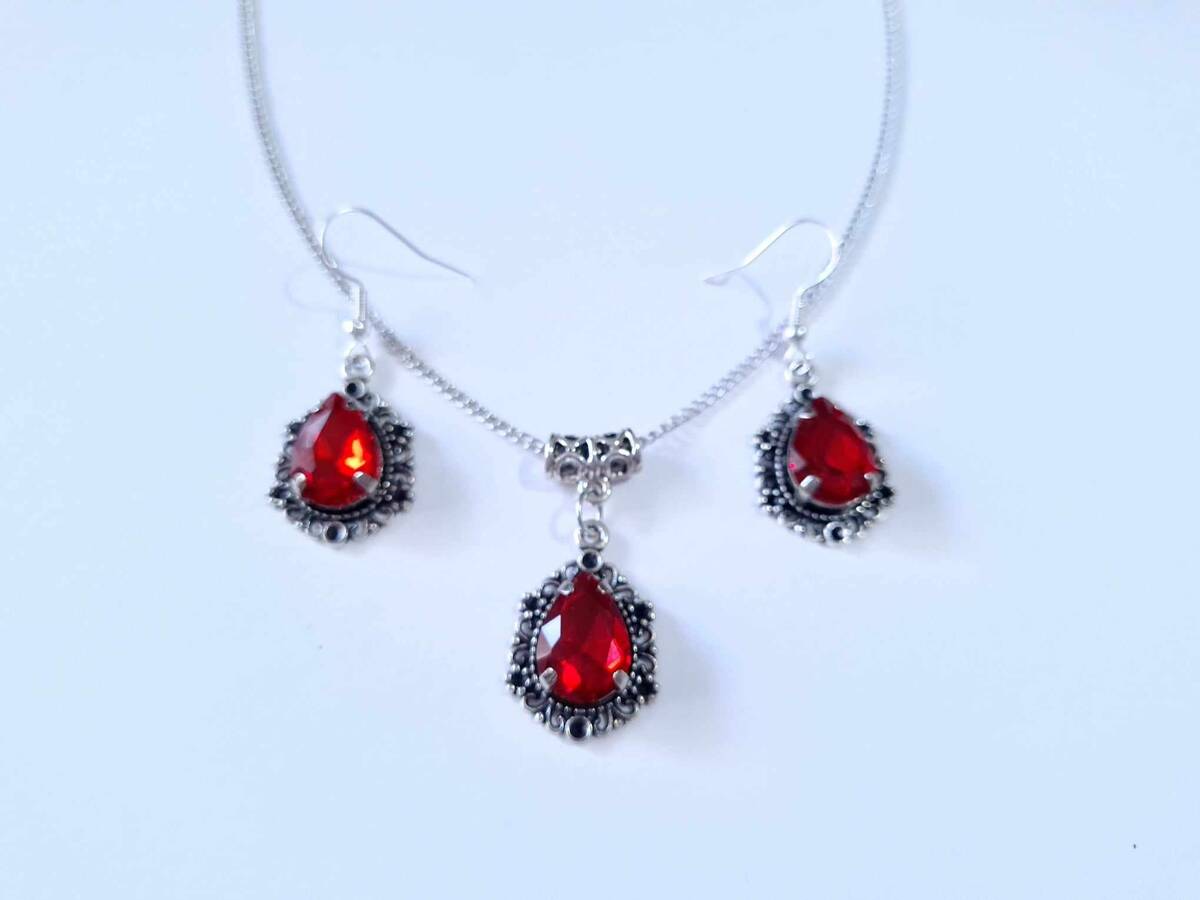 - Victorian Ruby red Silver jewelry set Ruby red set necklace earrings Victorian j