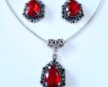 Victorian Ruby red Silver jewelry set Ruby red set necklace earrings Victorian j