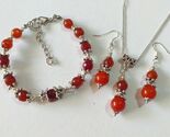 This listing is for 3 pieces jewelry set - 1 necklace, 1 bracelet and 1 pairs of earrings made of silver-toned ornaments and tile red quartz.