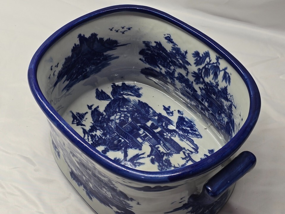 - Victorian Ware Ironstone Footbath Planter Jardinière 11" Blue White Vintage