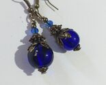 Victorian blue bronze earrings cobalt blue earrings Boho earrings Bronze earrings Royal blue earrings Gothic earrings gift earrings for her