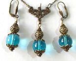 Victorian blue bronze jewelry set bohemian jewelry set earring necklace Boho set blue glass set antique set gift set blue bronze jewelry