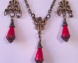Beautiful Victorian style jewelry set earrings and necklace made of crystal tale red pearls beads and bronze-tone flower rose ornaments . Victorian jewelry set earrings and necklace . Bronze beautiful Boho set earrings and necklace . Bohemian earrings . Bohemian necklace. Victorian style bronze-tone Burgundy crystal pearl beads dangle earrings and necklace . Romantic jewelry set pearls earrings and necklace . Bridal jewelry set. Gothic Wedding jewelry set.