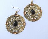 Beautiful Victorian filigree antique bronze-tone earrings with brown and black . Boho earrings . Bohemian earrings . Brown glass beads and bronze Boho earrings . Vintage style earrings . Filigree earrings . Gypsy beautiful earrings . Big filigree circle Vintage style earrings .