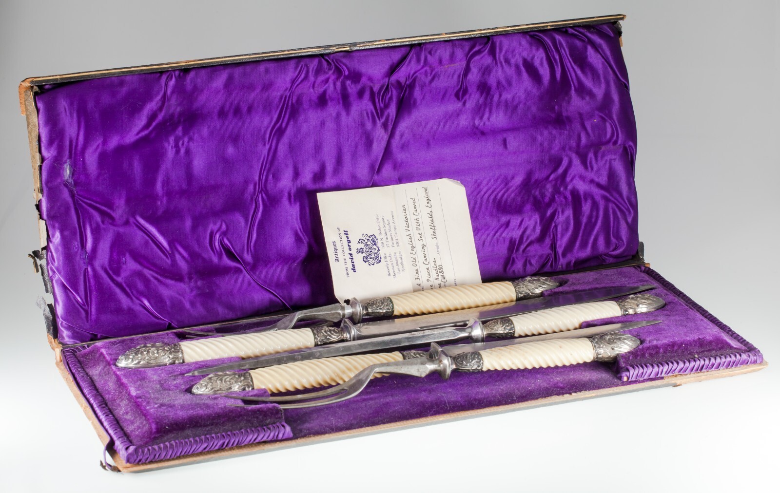 Victorian five piece carving set, by Robert F Mosley Co, Sheffield