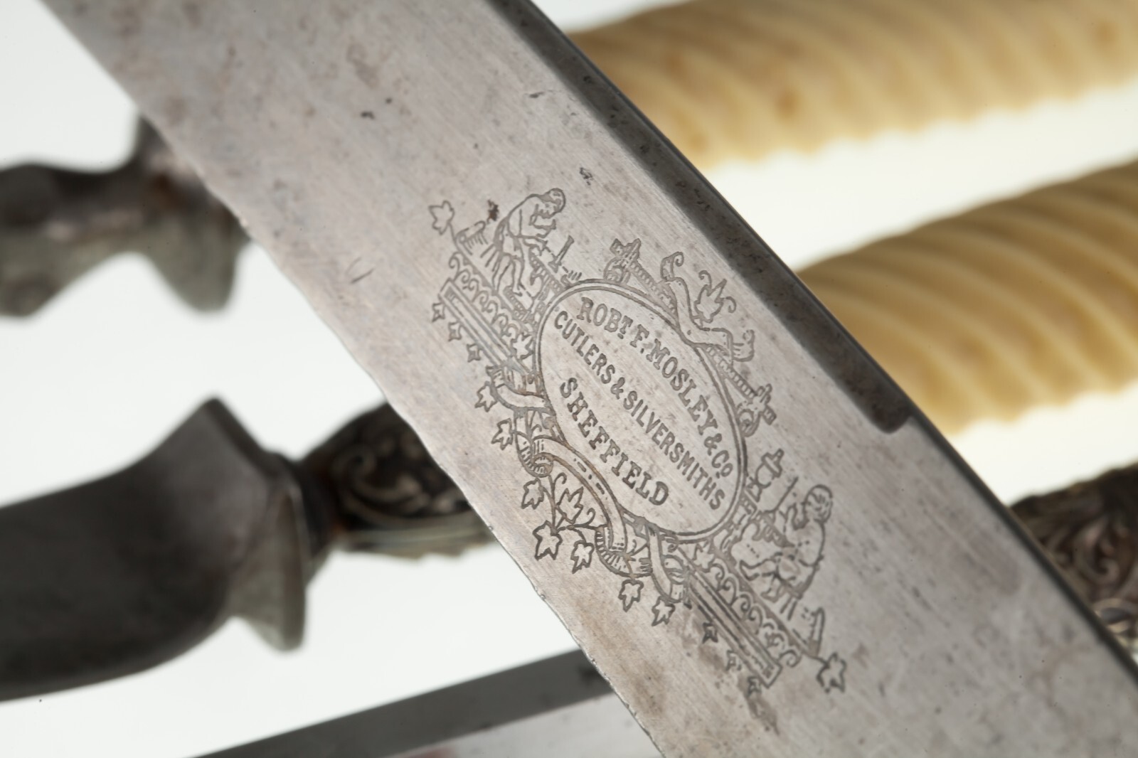 Victorian five piece carving set, by Robert F Mosley & Co, Sheffield