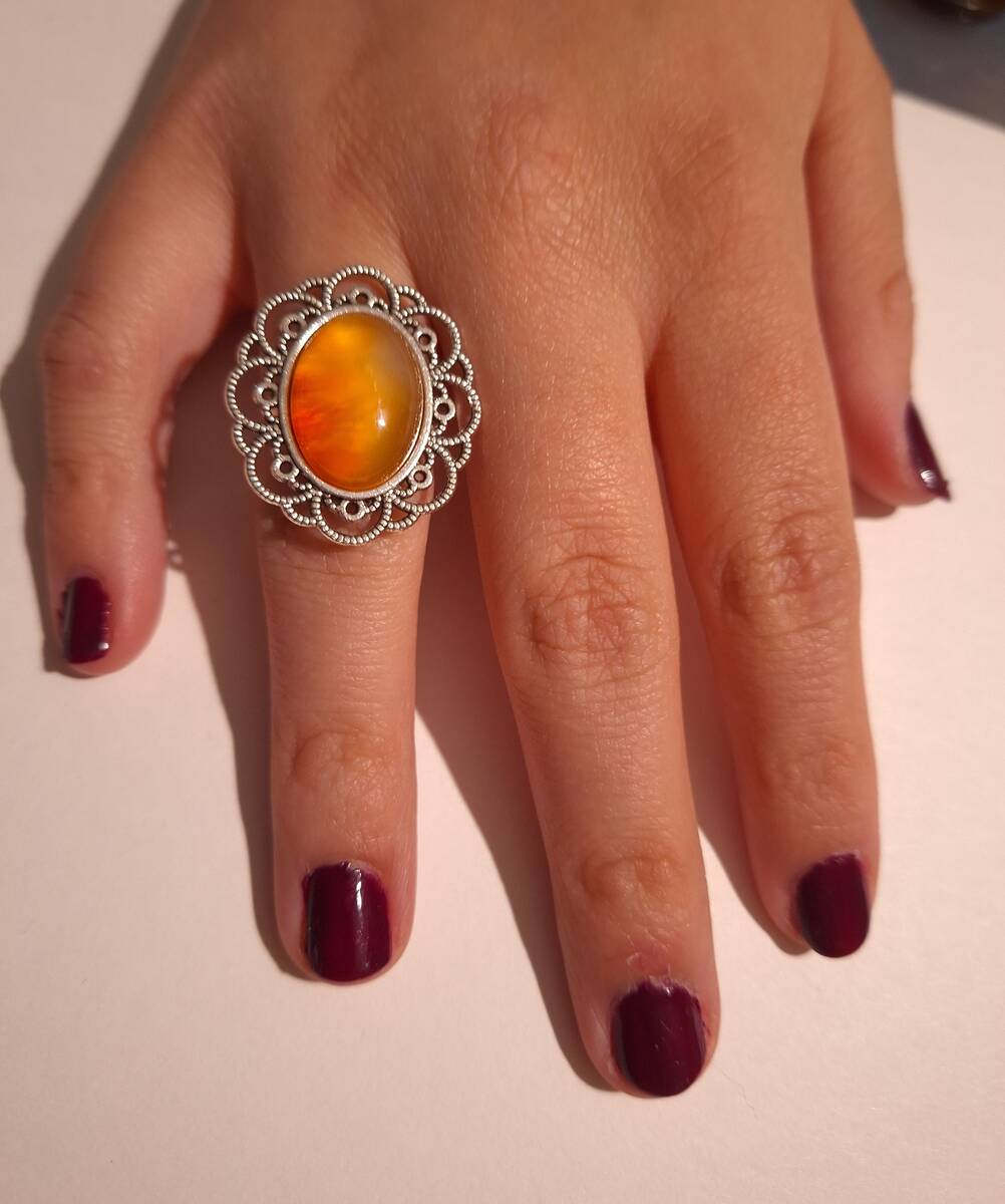 Victorian large genuine Carnelian silver-tone beautiful ornamented base adjustable ring with a beautiful Carnelian cabochon inlay . A beautiful ring to wear and complete any outfit!