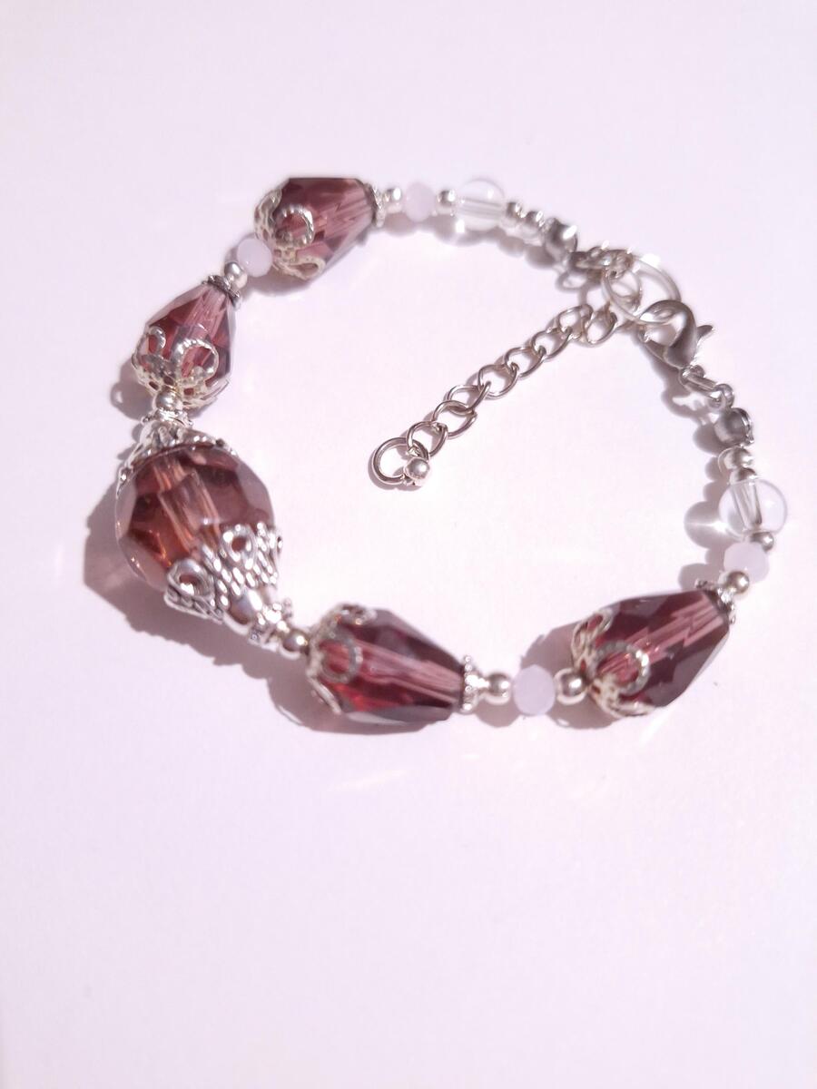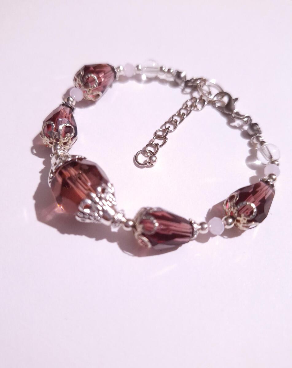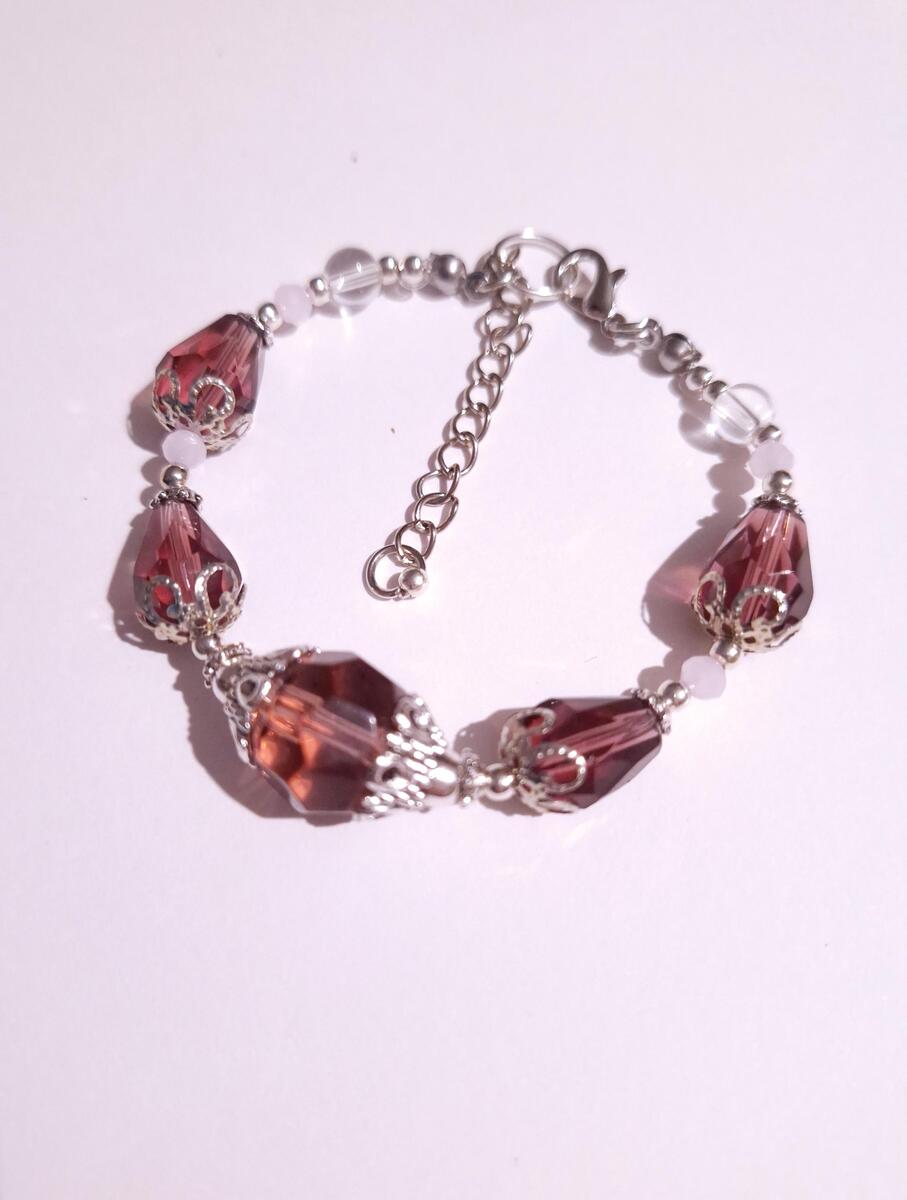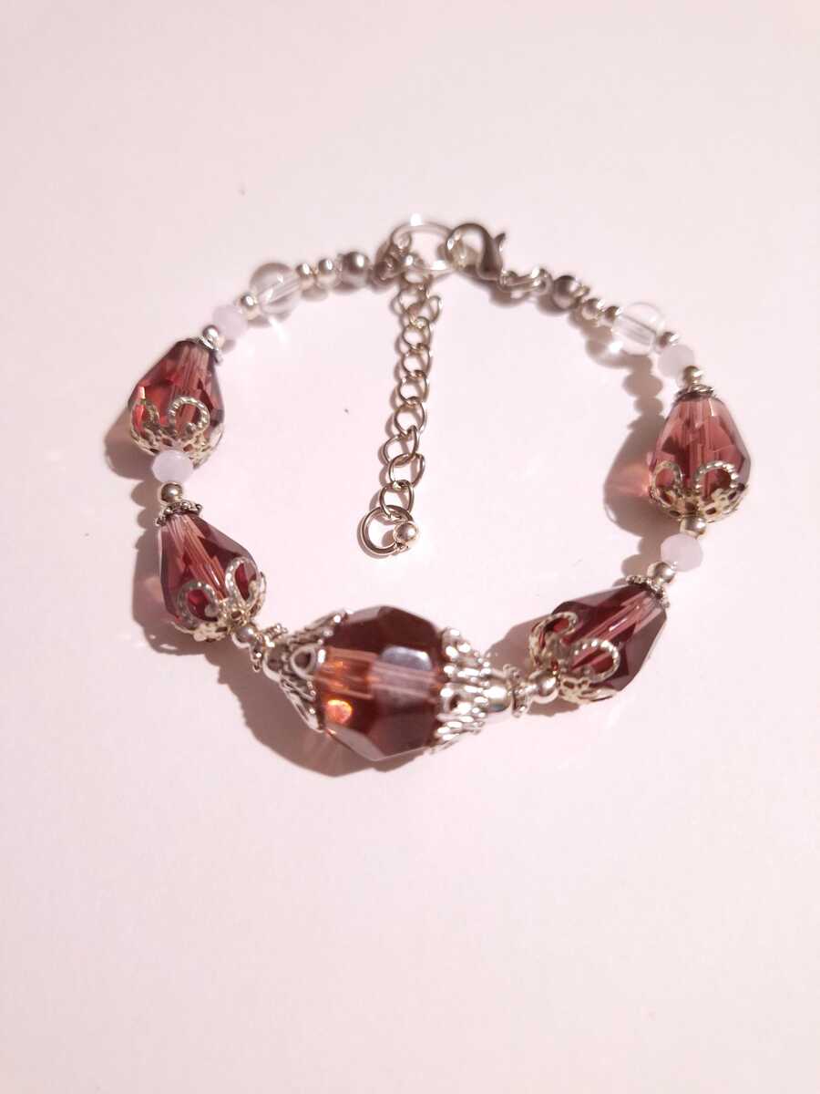 Victorian filigree burgundy big faceted glass bead, terdrop faceted burgundy glass beads, clear glass beads and little rose pink faceted fine Czech crystals with filigree silver-tone ornaments. Unique bracelet . Silver-tone and red wine-tone bracelet . Boho bracelet . Bohemian bracelet . Vintage style bracelet. Antique style bracelet. Perfect Gift .