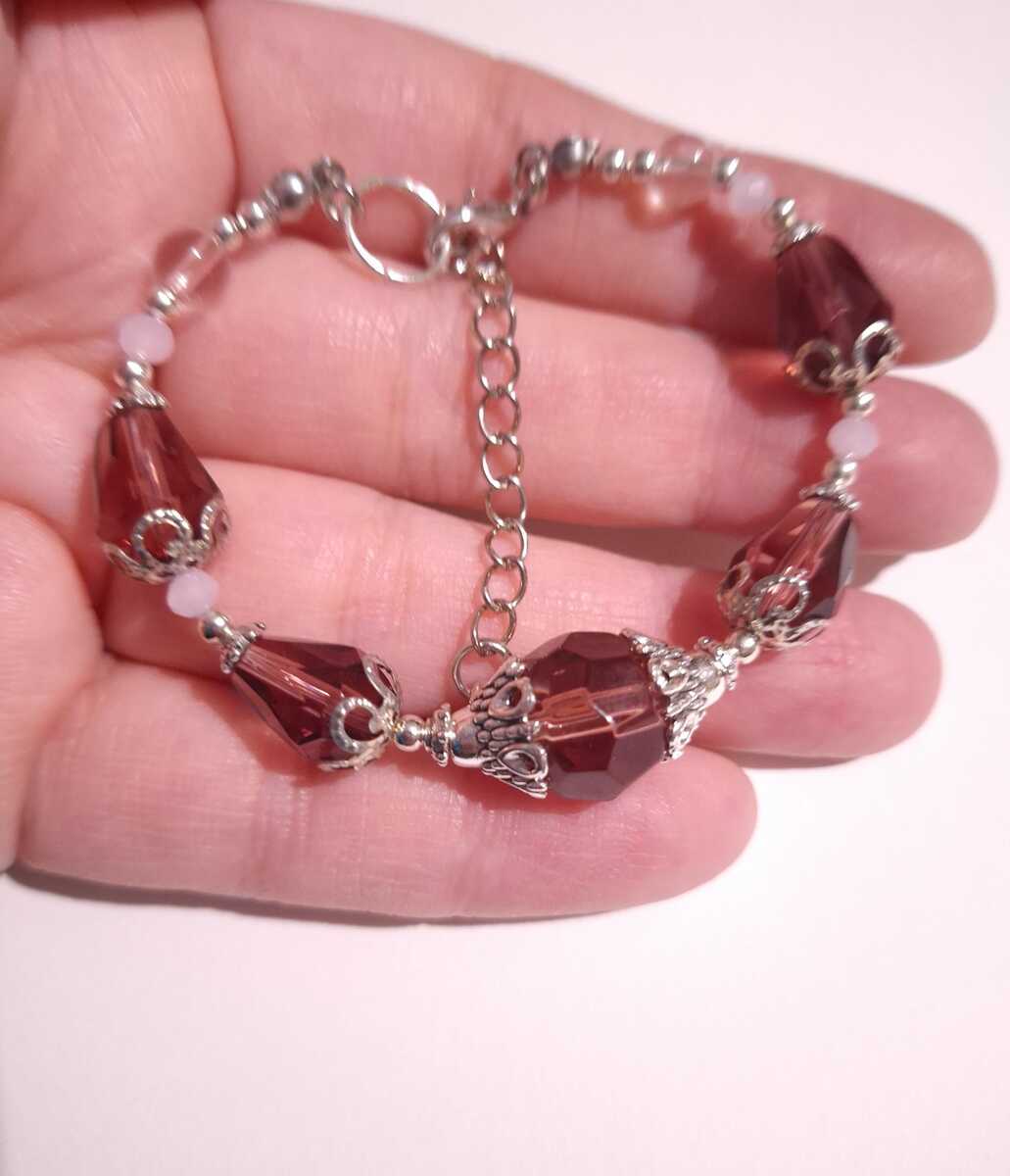 - Victorian silver burgundy bracelet Boho bracelet red wine tone little rose pink