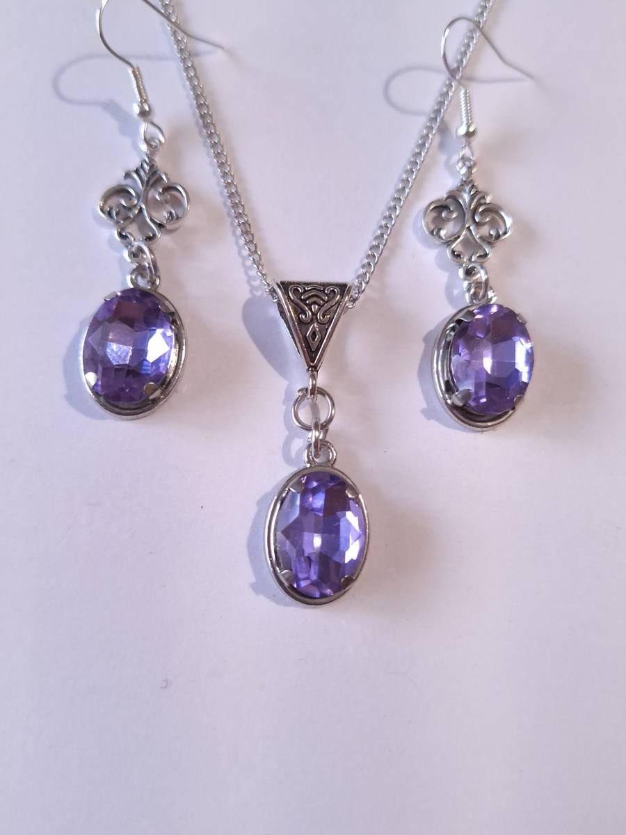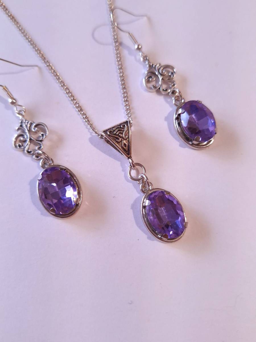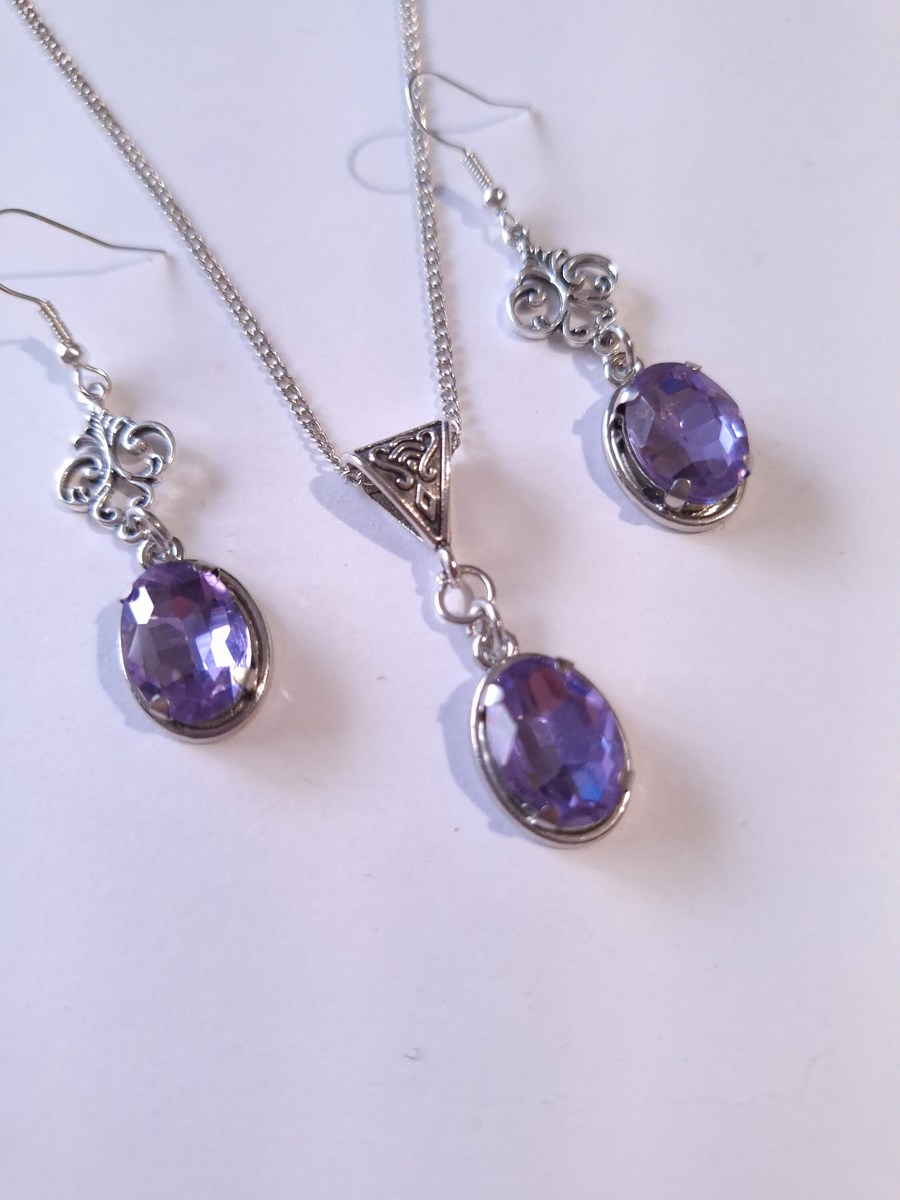 - Victorian silver purple jewelry set necklace earrings Silver lavender jewelry se