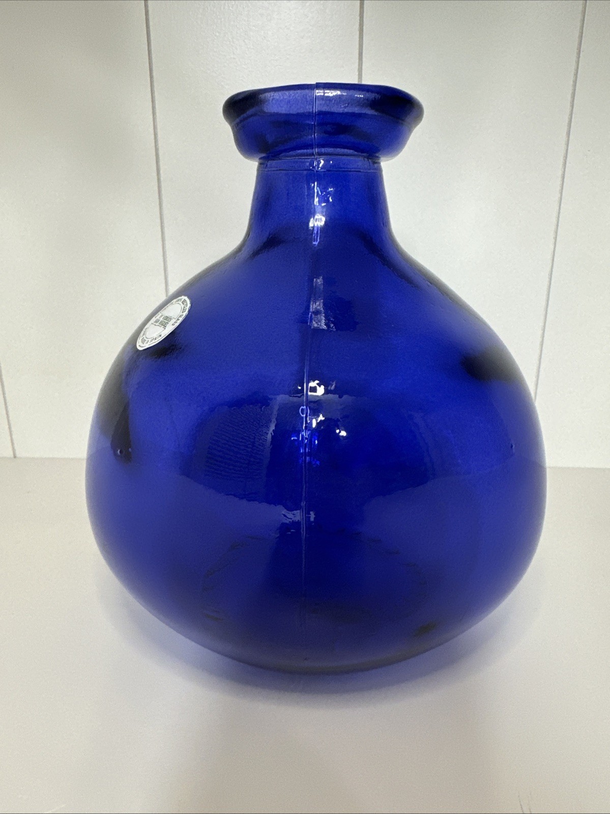 Vidrios San Miguel 100% Recycled Glass 7”x6.5”Cobalt Blue Bulb Vase