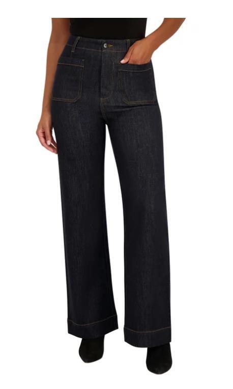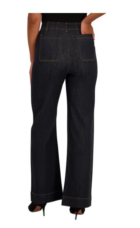 Vigoss Womens Jeans Dark Blue Trouser Stretch High-Waist Pockets Wide Leg