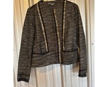 - Vince Black White Tweed Zip Blazer Jacket Career Fringe Trim Womens Size 2
