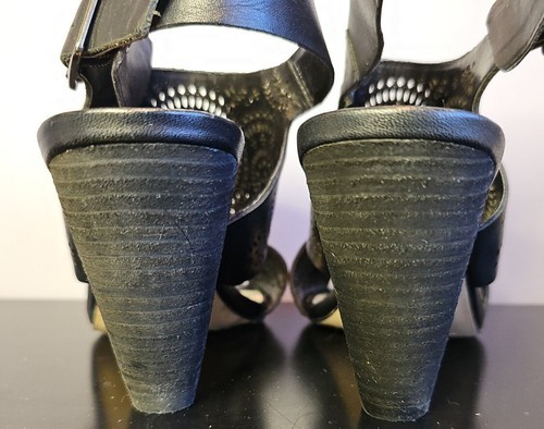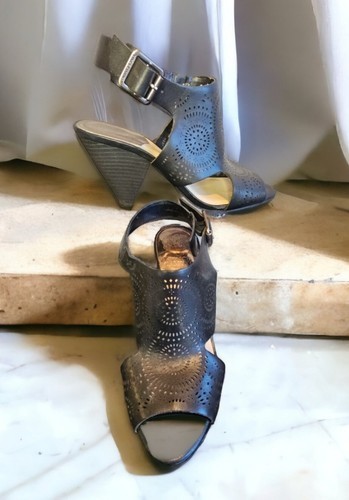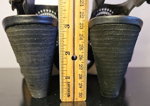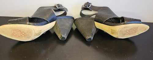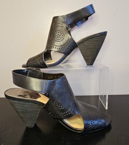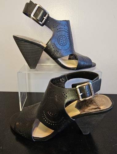 Vince Camuto Ellezi Black Heeled Open Toe Wedge Sandals Buckle Womens Sz 7.5 M