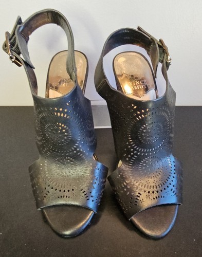 Vince Camuto Ellezi Black Heeled Open Toe Wedge Sandals Buckle Womens Sz 7.5 M Women's black Ellezi style open toe wedge sandals. PLEASE REFER TO ALL PHOTOS FOR A BETTER VISUAL DESCRIPTION OF THE ITEM All of My Items Come from a Smoke Free Home I Strive to Ship Next Day Feel Free to Visit My Store and Browse Through My Other Listings as I am happy to combine shipping for you. Please contact me with any issues prior to leaving negative/neutral feedback or low detail ratings, as I will always do my best to solve any problems that may come up! Please refer to all photos above for a better visual description of the product being offered and its condition. If you have any further questions, please feel free to message me Any props that are used in the taking of the photos are not included. Only the item/items in the title of the listings are being sold