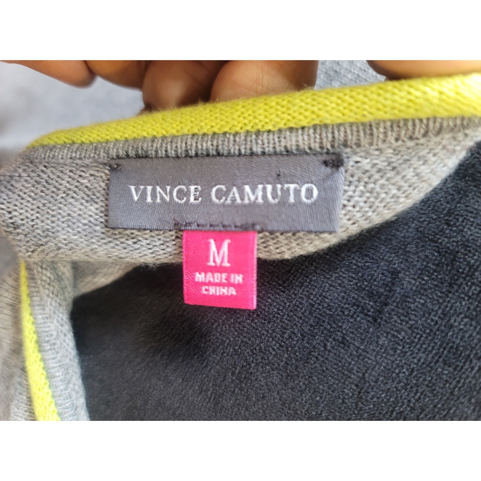 - Vince Camuto Sweater Women's Size M Gray Black Green Yellow Long Sleeves