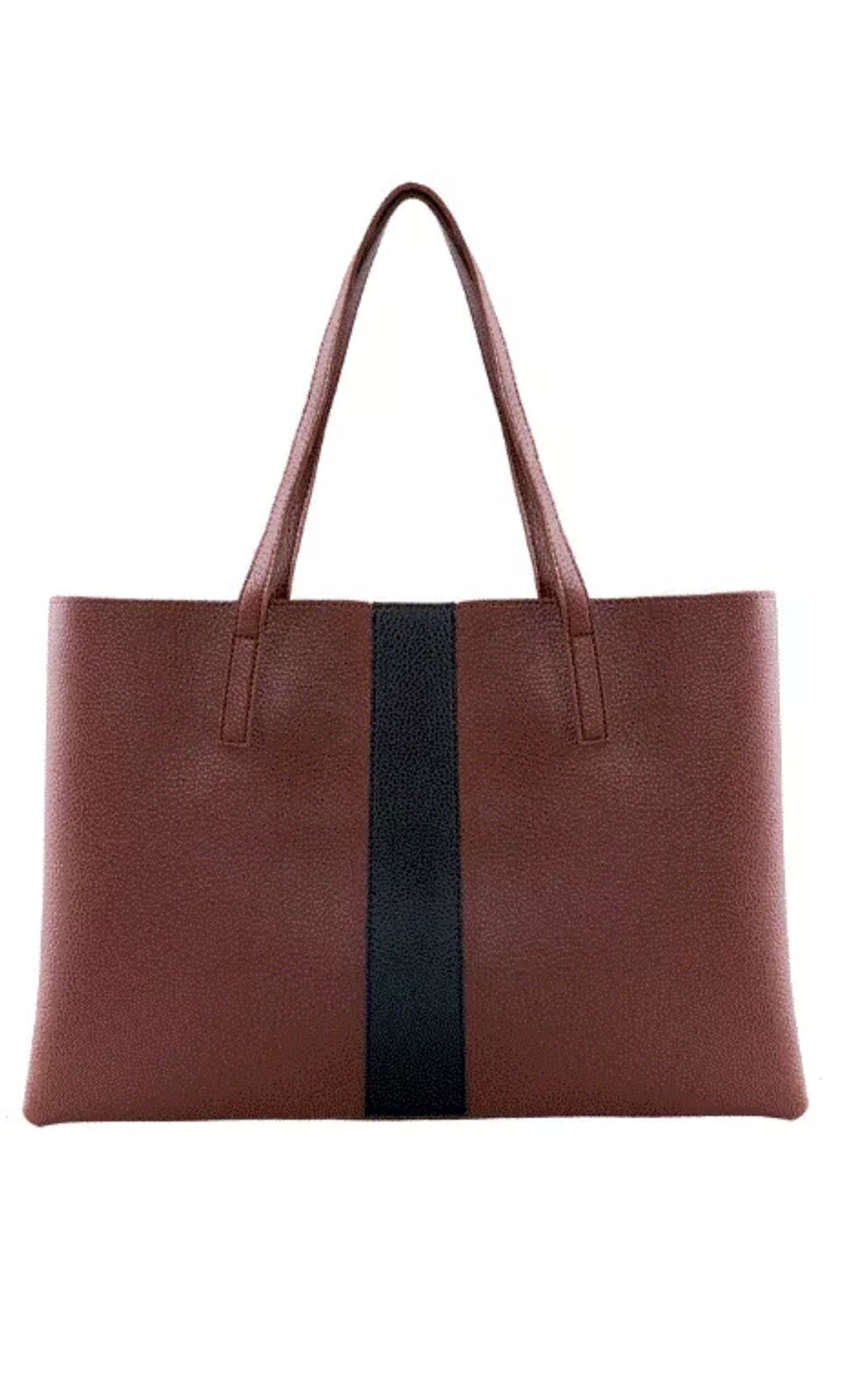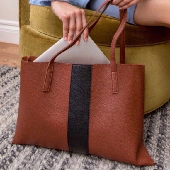 Made exclusively for Vince Camuto x FabFitFun, the Luck Tote is durably crafted of wipe-clean, pebbled vegan leather styled with a contrast stripe. Cut with clean lines and generously sized to carry your daily essentials, the tote is designed with an unlined sueded interior and hanging slip pocket that holds your keys, commuter pass and more. Double-layer topstitched straps let you carry the tote on your shoulder or in hand. Embossed ?VINCE CAMUTO? logo adds a touch of distinction.
