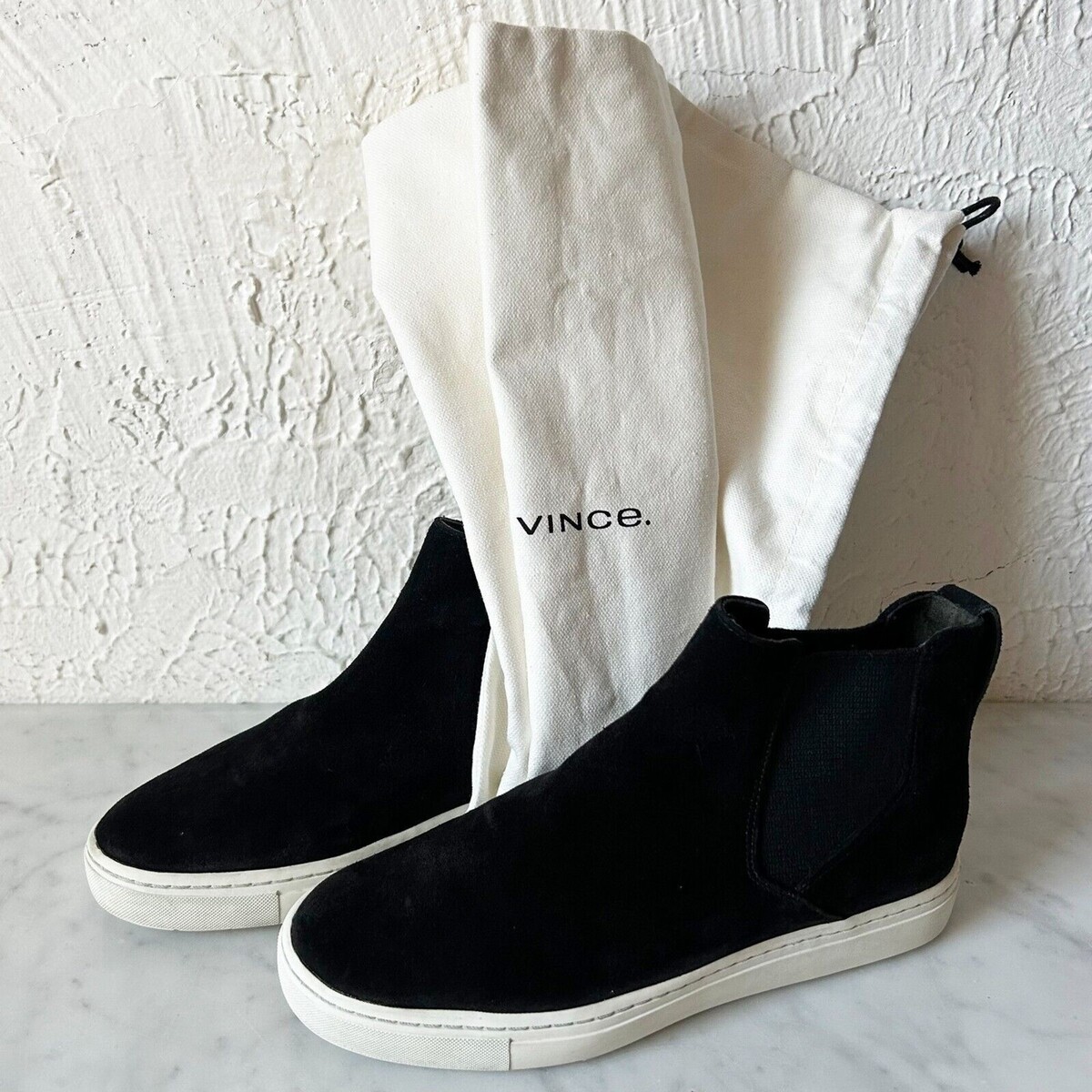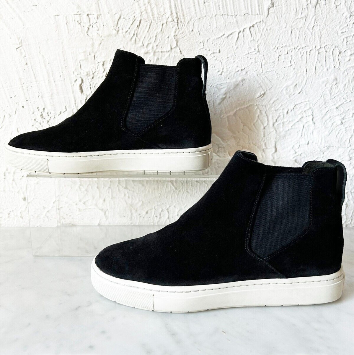 Vince Newlyn Black Suede Leather High Top Pull On Sneaker + Dust Bag-Women's 5.5