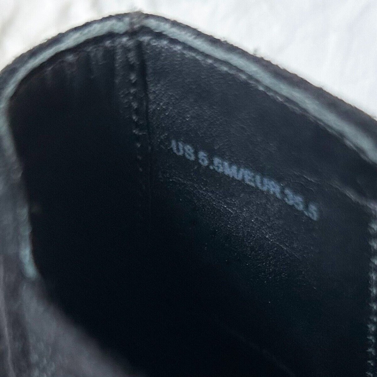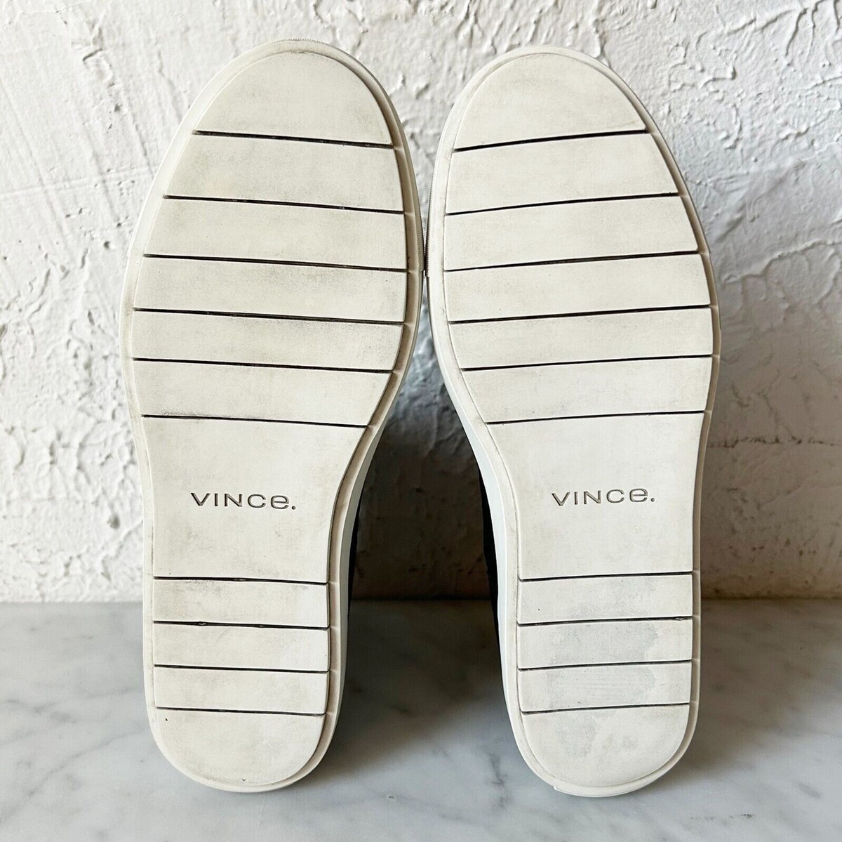 Vince Newlyn women's size 5.5 black suede leather high top pull on sneakers are in excellent condition. Includes white dust bag. Please take a look at the pictures for all the details. 9-7/8" from heel to toe (taken with the shoes against the wall) 3-1/2" across at widest point 1-1/4" heel 4" shaft height