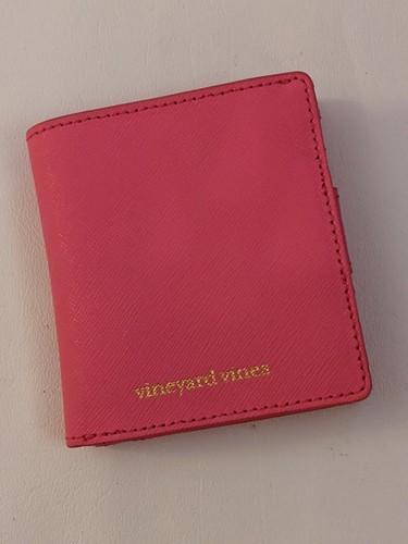 - Vineyard Vines Pink Bifold Saffiano Leather Snap Wallet 3.5 x 3.75 inch
