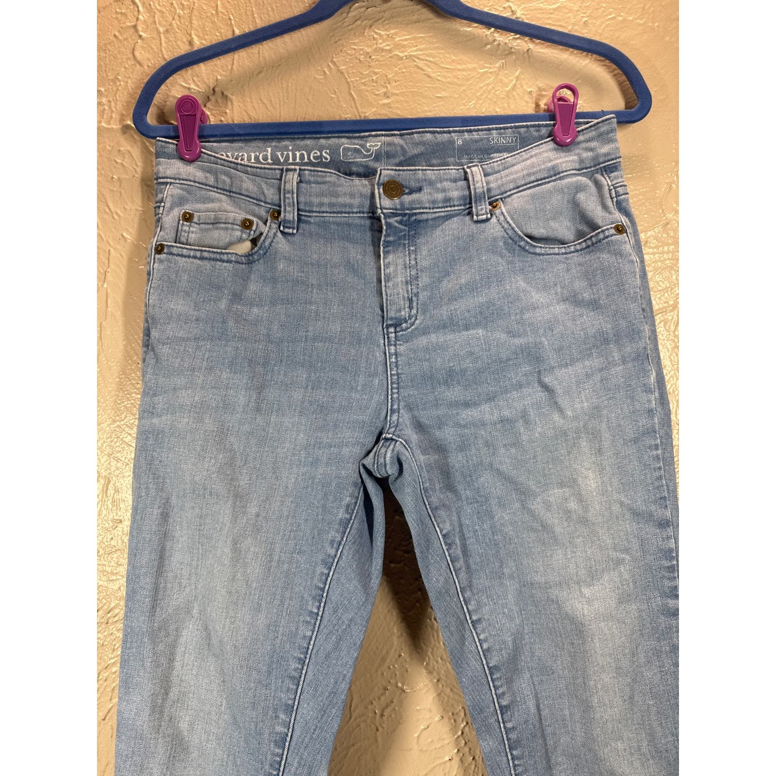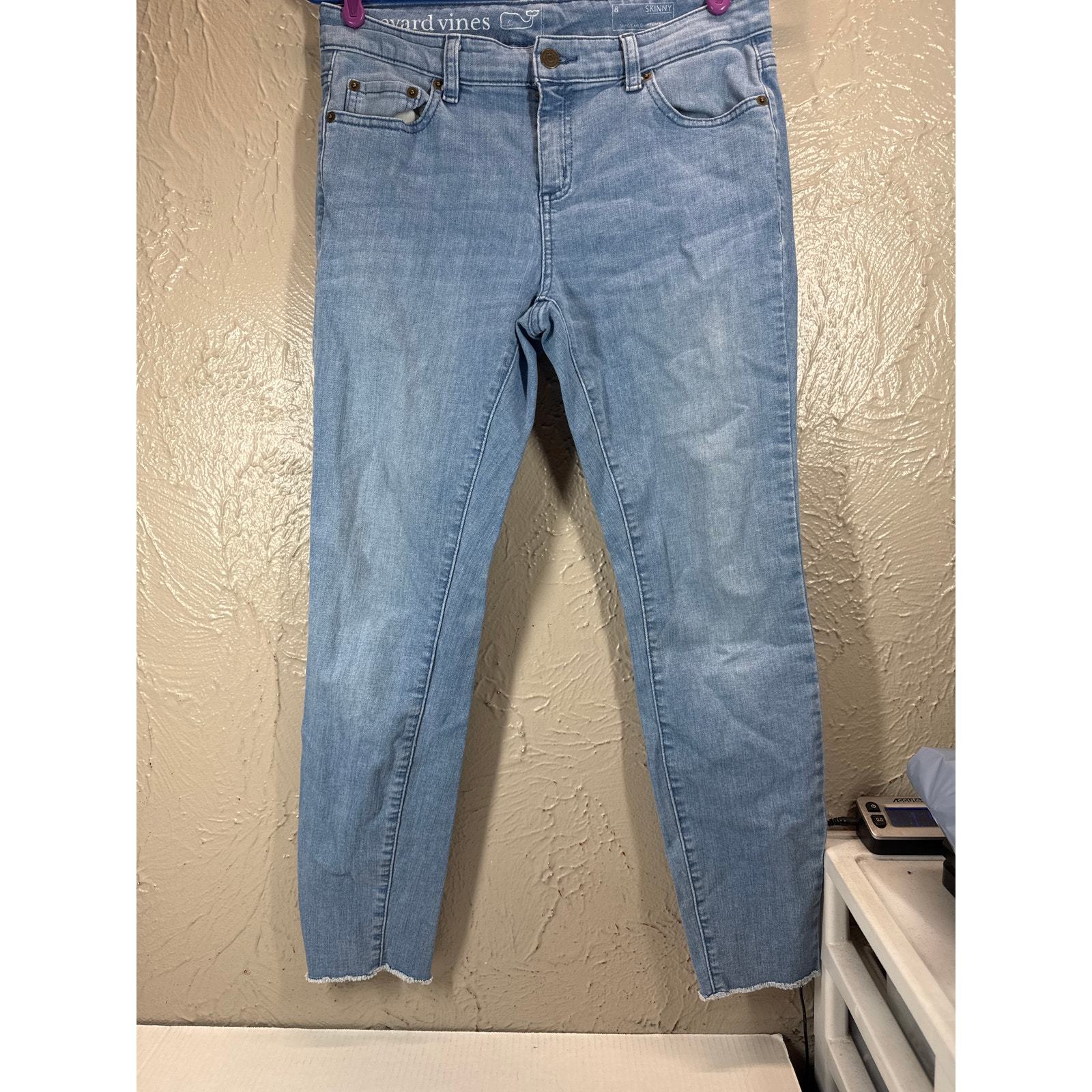 - Vineyard Vines Skinny Raw Hem Ankle Ivory Jeans Sz 8 Womens Slim Fit Stretch