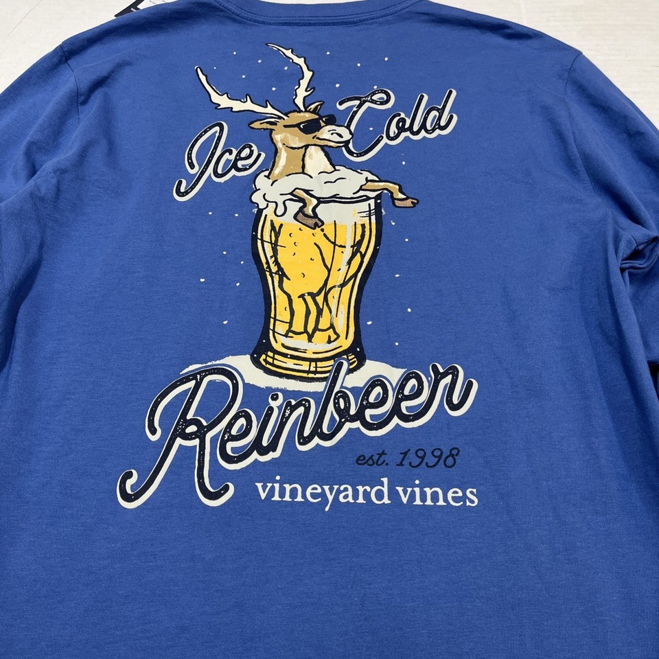 - Vineyard Vines TShirt Mens S Blue Moon Reinbeer Reindeer Long Sleeve Holiday