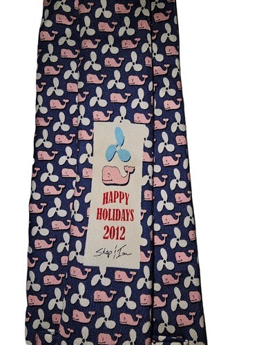 - Vineyard Vines Whales Silk Neck Tie Necktie Unisex Holiday 2012 Blue Pink White