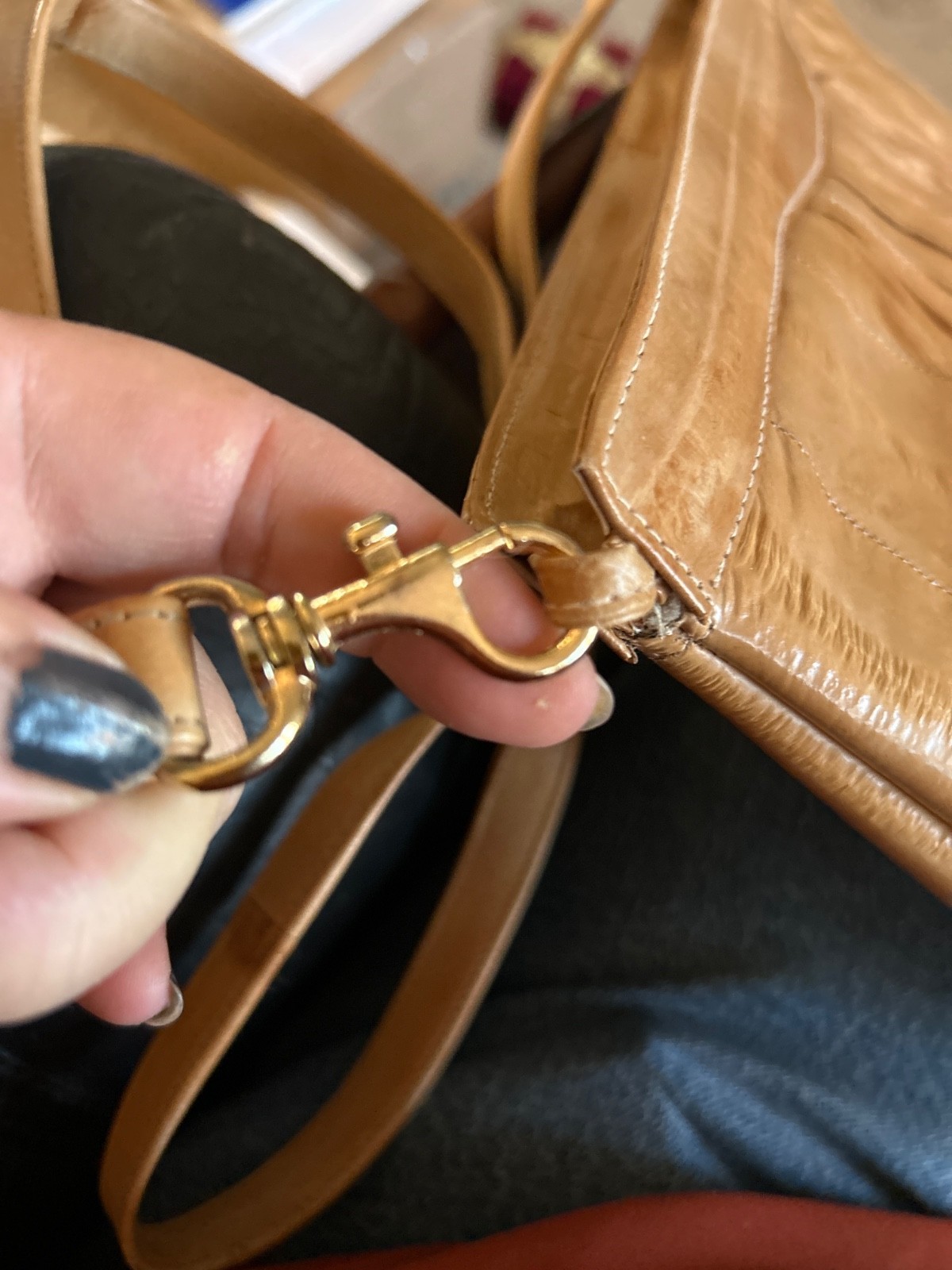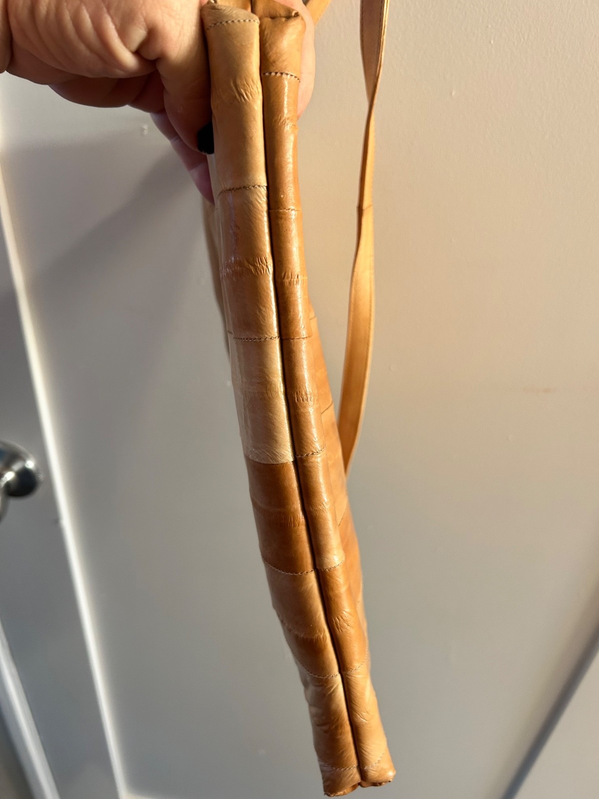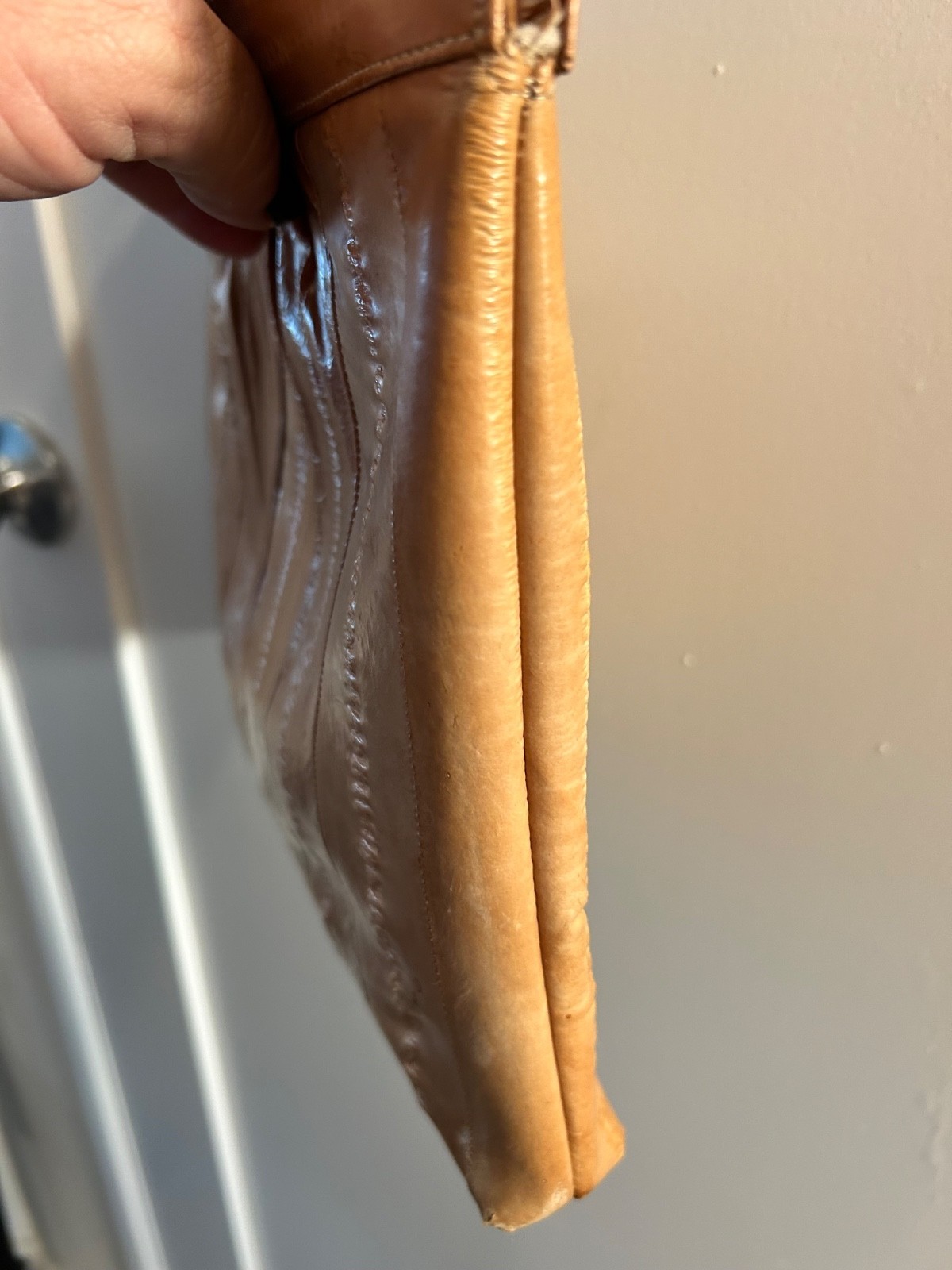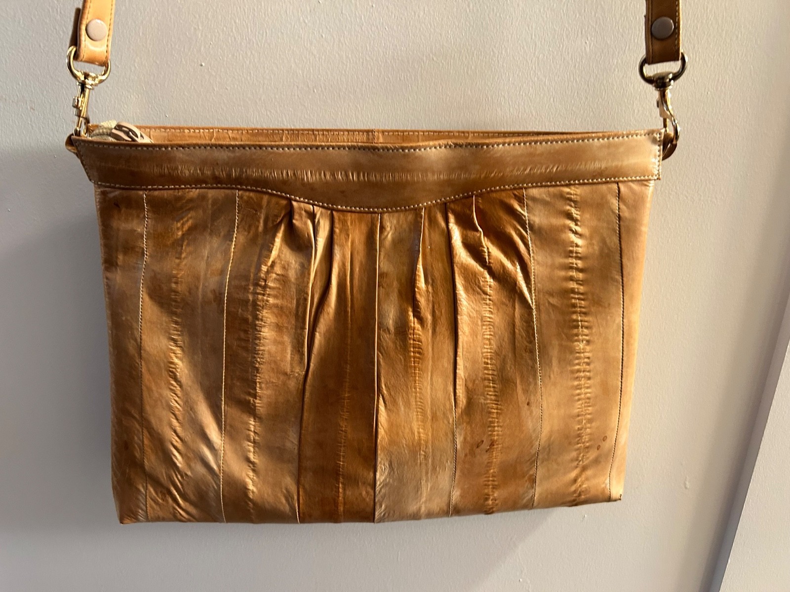 - Vintage 100% Genuine Eel Skin Leather Shoulder Bag Clutch Crossbody Tan Retro
