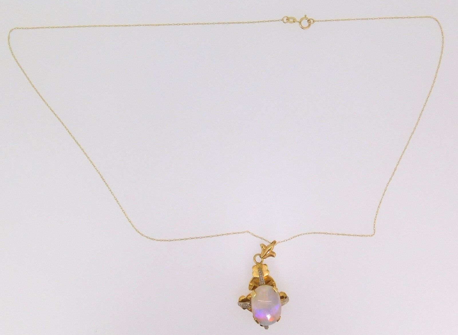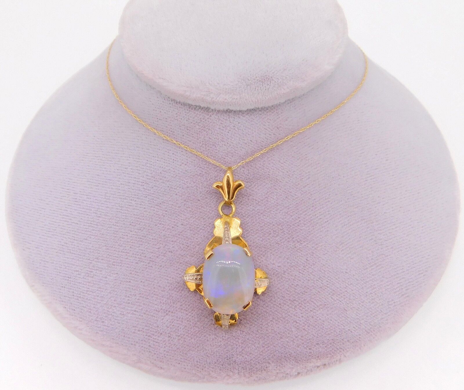 Vintage 18k Oval Genuine Natural Opal with 14k Chain (#J3908)