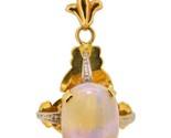 18k yellow gold opal pendant featuring a large oval opal that measures about 15mm x 11.5mm. Without the bail the pendant measures 30mm x 20mm, and with the bail it is 1 1/2" long. It includes a new 14k yellow gold 18" chain. The necklace weighs 3.7 dwt., and the pendant dates from 1940-1950s. Pretty!