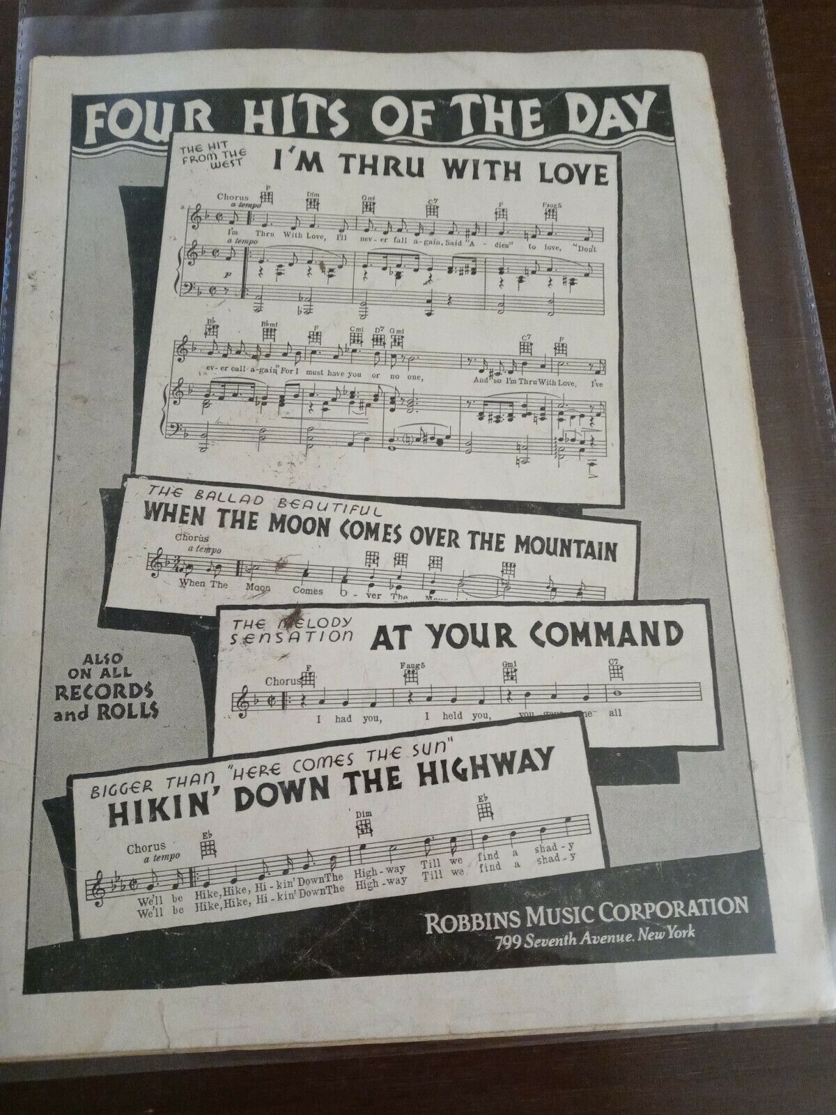 VINTAGE 1931 SHEET MUSIC WHEN THE MOON COMES OVER THE MOUNTAIN Kate Smith. Condition is "Used". Shipped with USPS First Class.AUTHENTIC SONG BOOK FROM THE SONG BOOK PUBLISHER COLLECTIBLE - VINTAGE - VERY RARE FAST SHIPPING WITHIN 24 HOURS Packed By Our Award Winning Packaging And Shipping Department Long Time E-commerce Seller For Over 20 Years LIMITED AVAILABILITY Add Our Store To Your favorites list ! The sale is final and please do not ask for refunds, returns, changes or cancelations Condition: Used (This Is A Vintage Old Rare Song Book With Wear,Tears,Creases ect Per Pictures Attached -See All The Enclosed Pictures For The Exact Condition) RARE VINTAGE COLLECTIBLE- SHIPS N 24 HOURS Inventory Box #5142