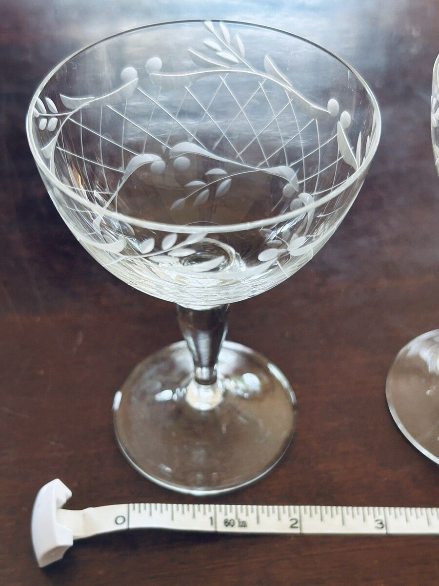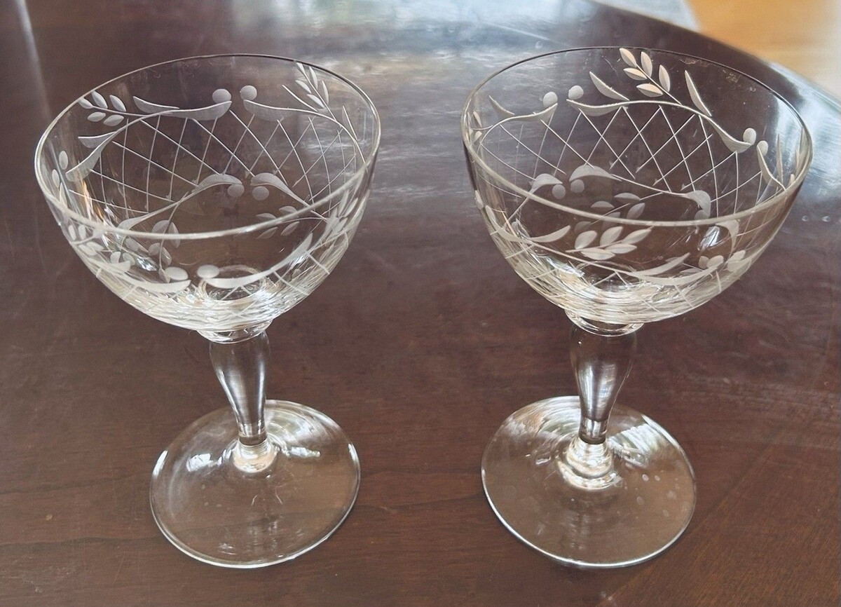 Vintage 1940 Elegant Hand Engraved Czech Bohemian Crystal Coupes