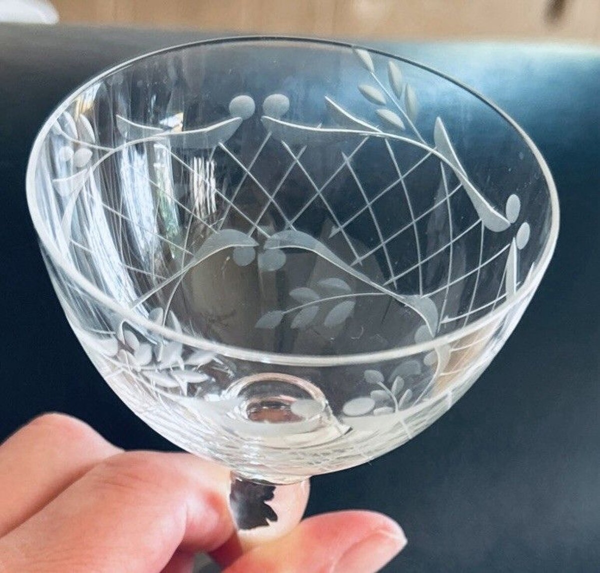- Vintage 1940 Elegant Hand Engraved Czech Bohemian Crystal Coupes