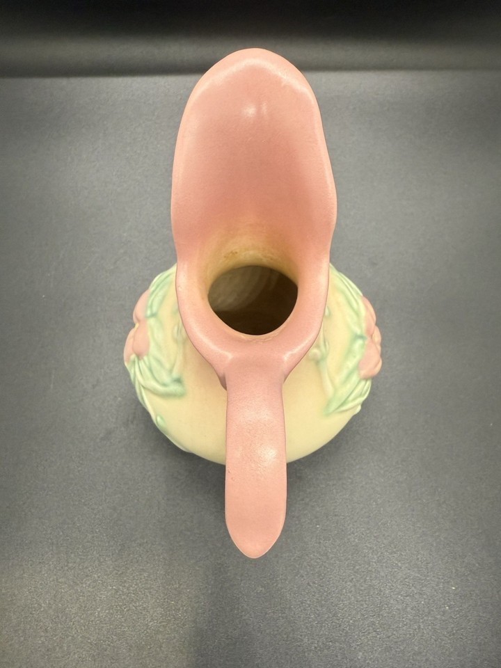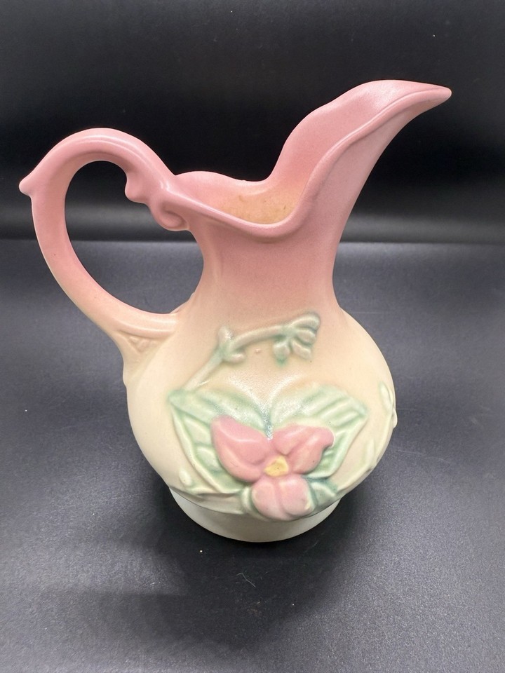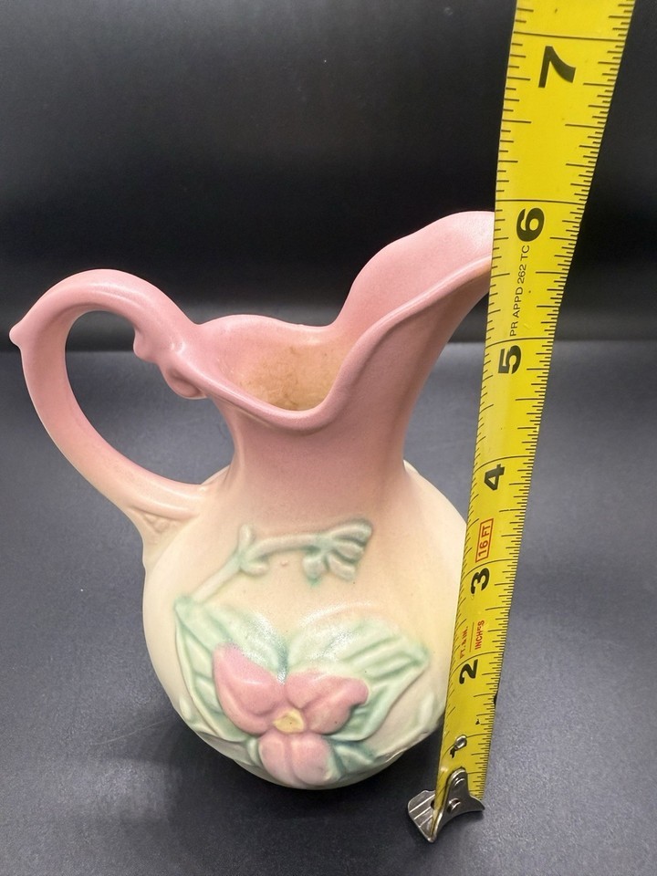 - Vintage 1940's Hull Art Pottery Pitcher Woodland W-2, 5 1/2", Pink Wildflowers