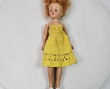 - Vintage 1950s eyes Open Doll Jointed 9.5 Inch Yellow Crochet Dress