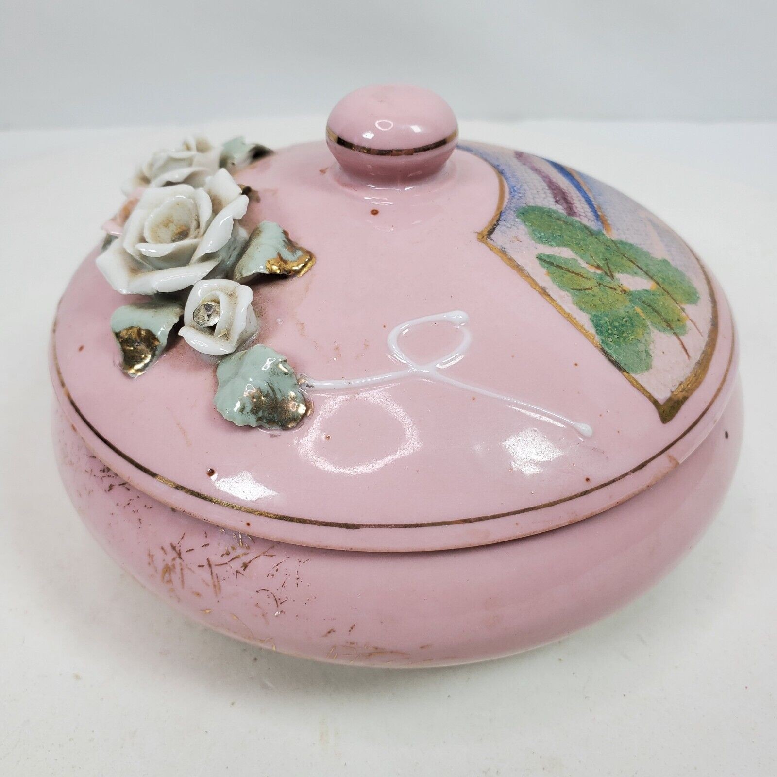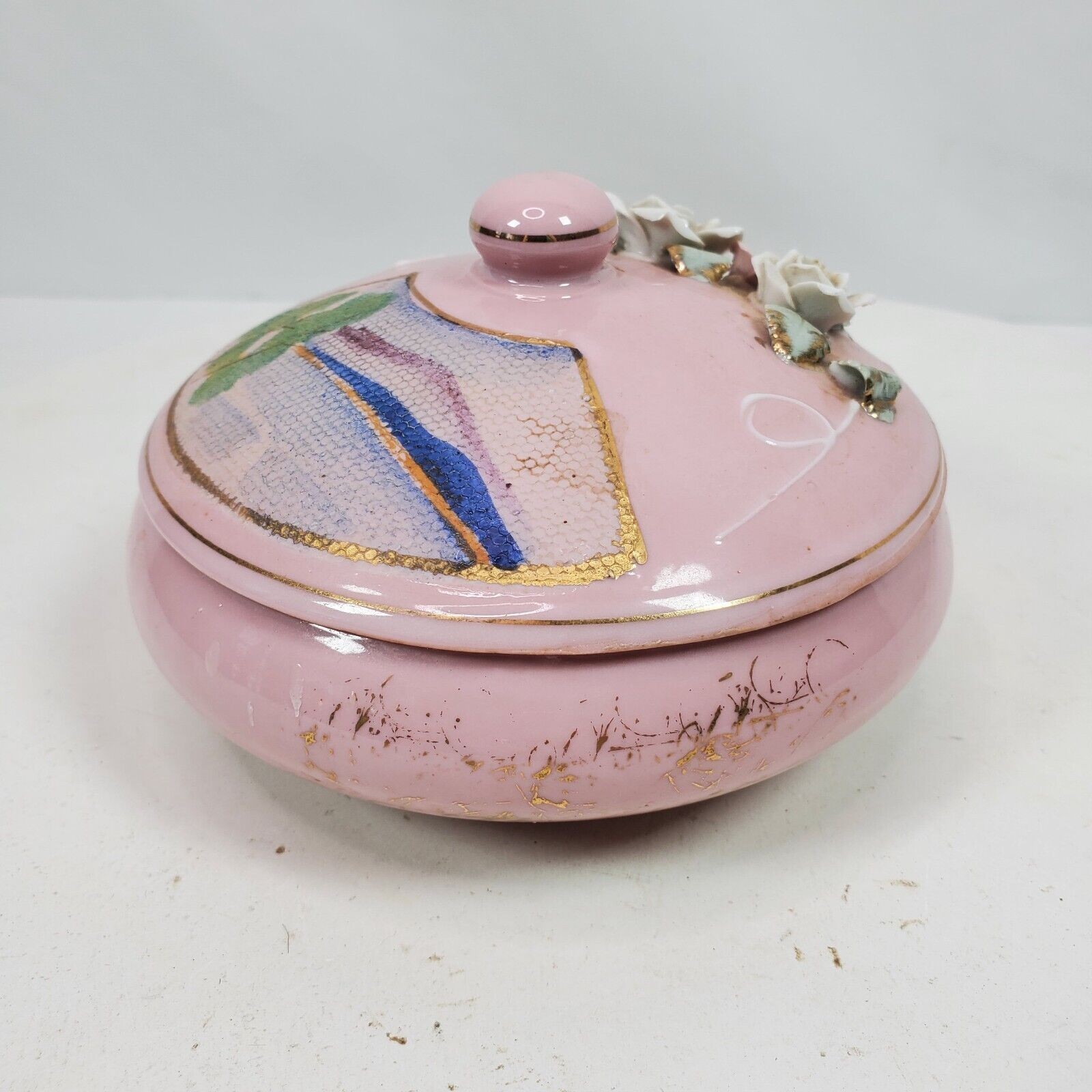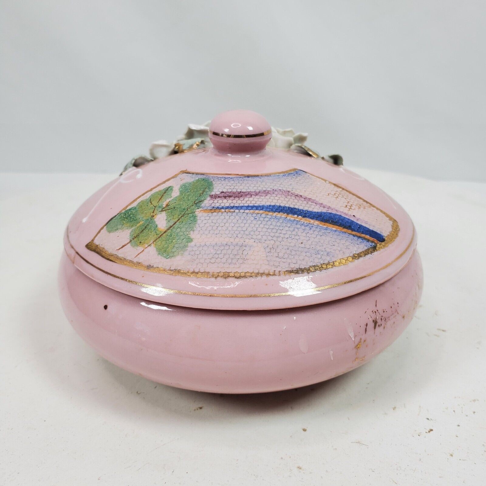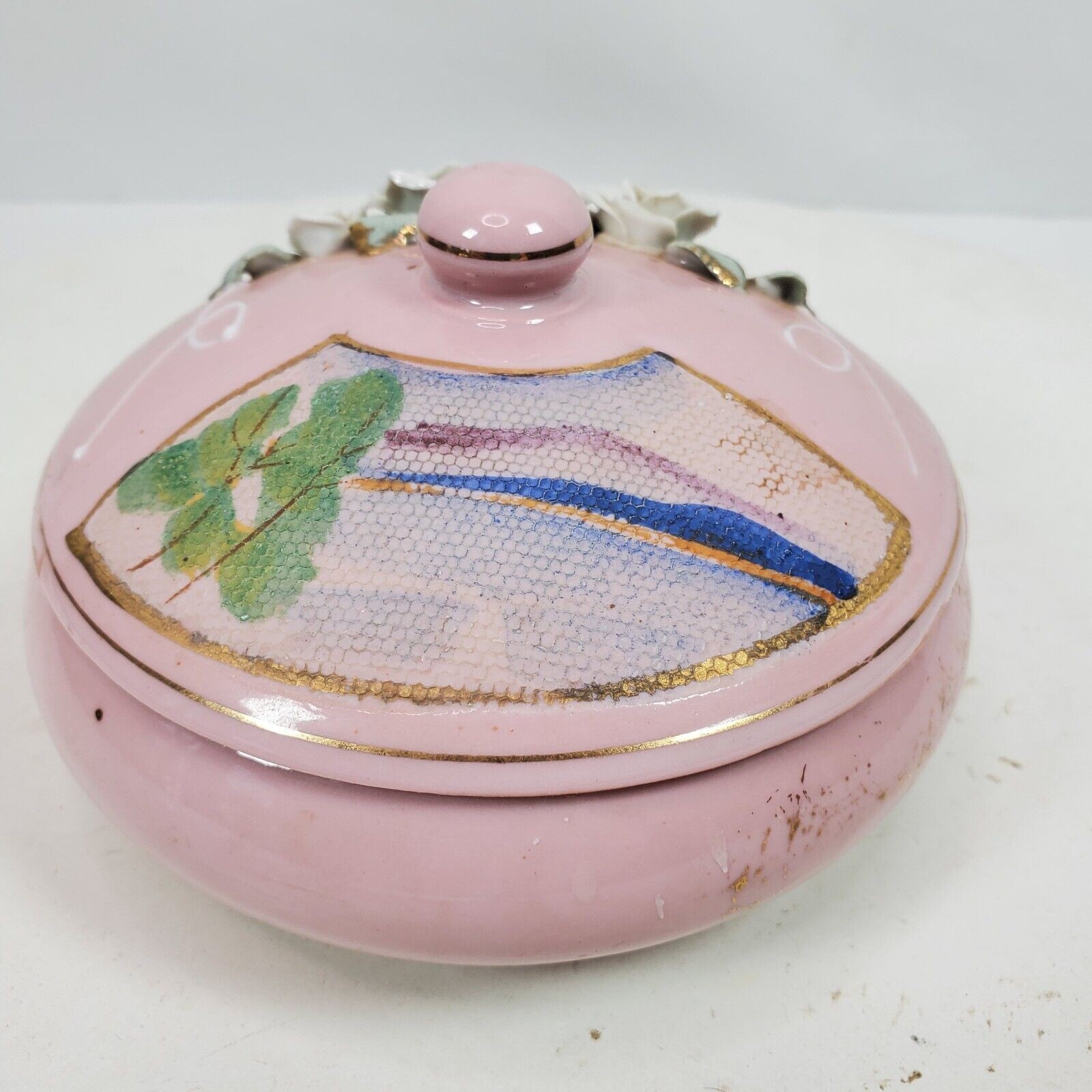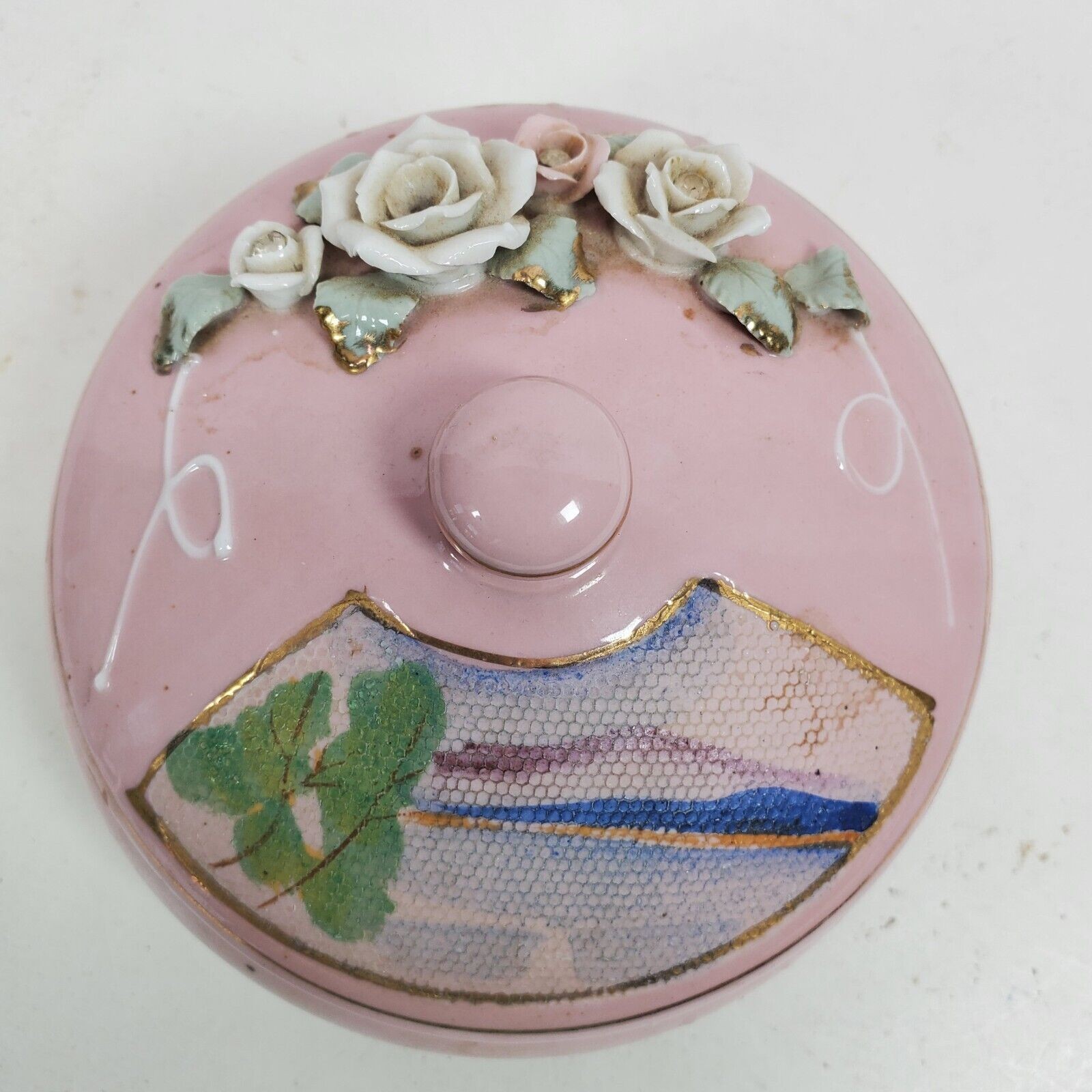 - Vintage 1960 Wales Cloisonne Pale Pink Trinket Box 3x5 Inch