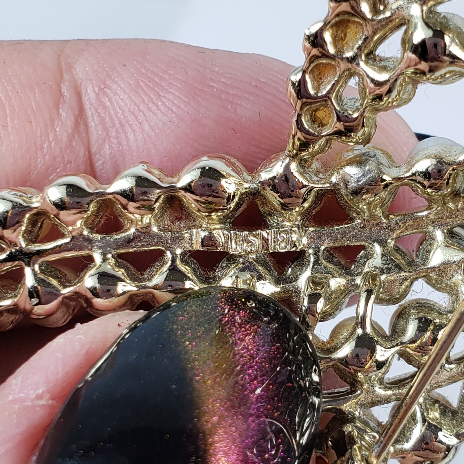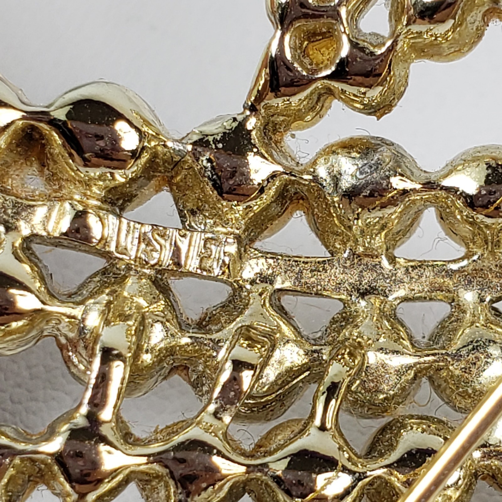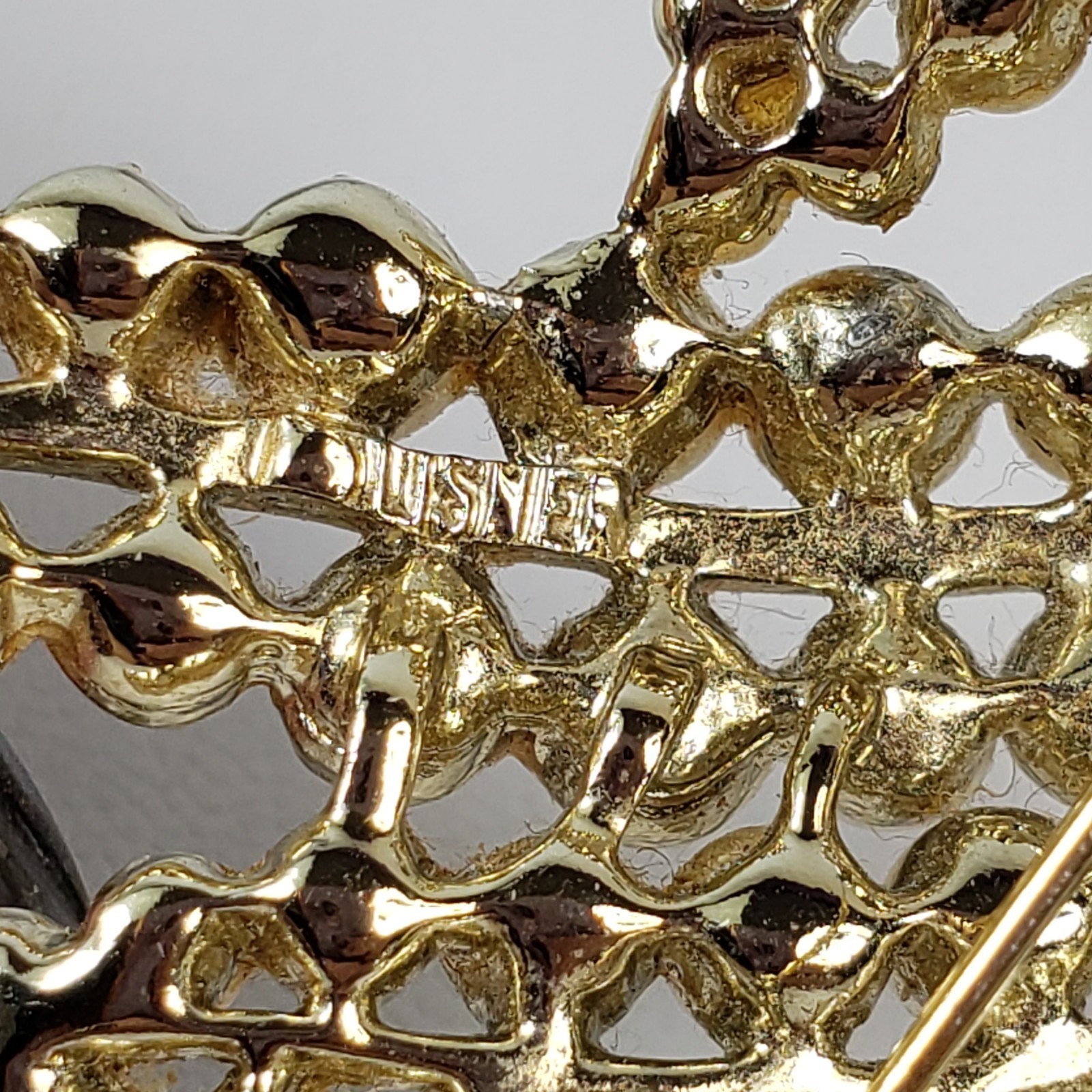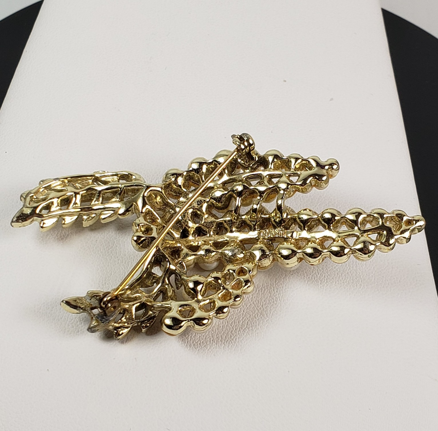 - Vintage 1960's LISNER Signed Floral Pale & Faux Pearl Silver Tone Brooch Pin