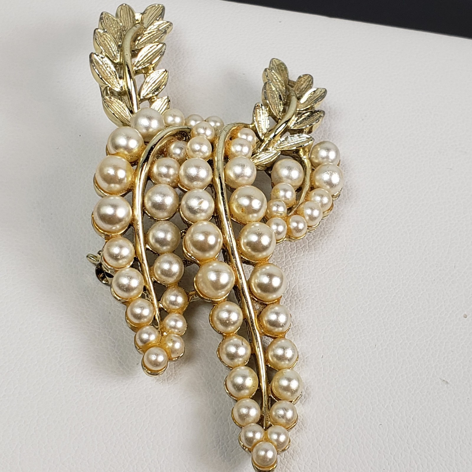 Vintage 1960's LISNER Signed Floral Pale Faux Pearl Silver Tone Brooch Pin