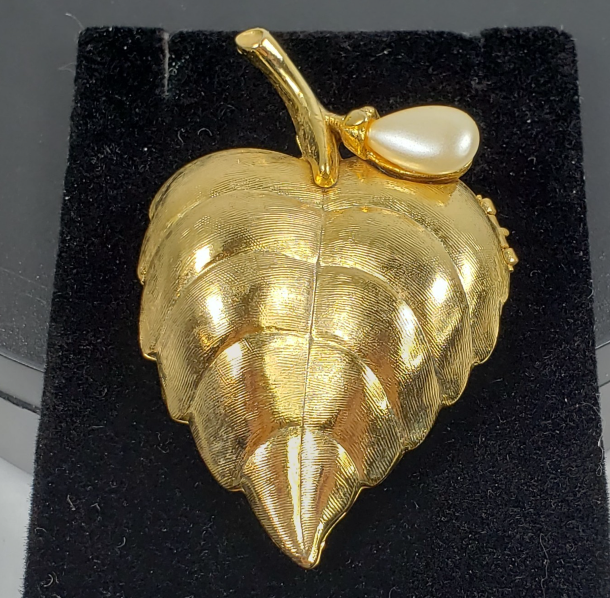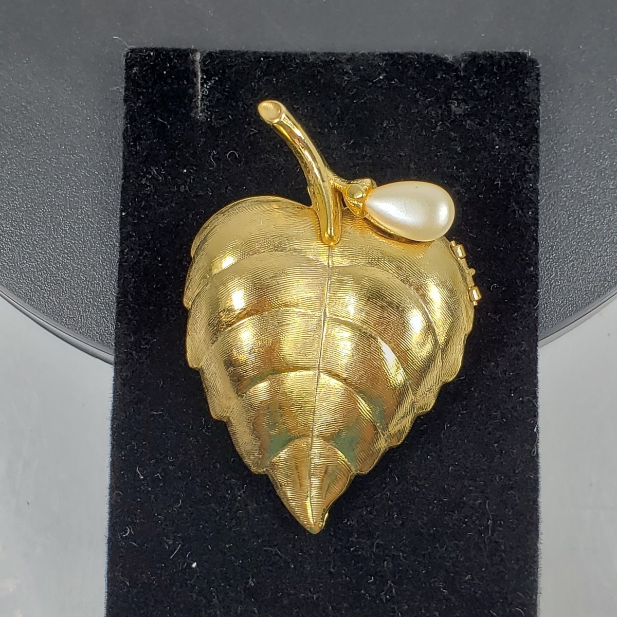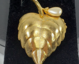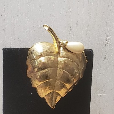 - Vintage 1960s AVON Goldtone Faux Pearl On Leaf Creme Perfume Brooch (No Perfume)