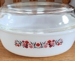 Primary image for Vintage 1960s Fire King ~ Primrose Pink & Red Flower 1.5 Qt Casserole Dish & Lid