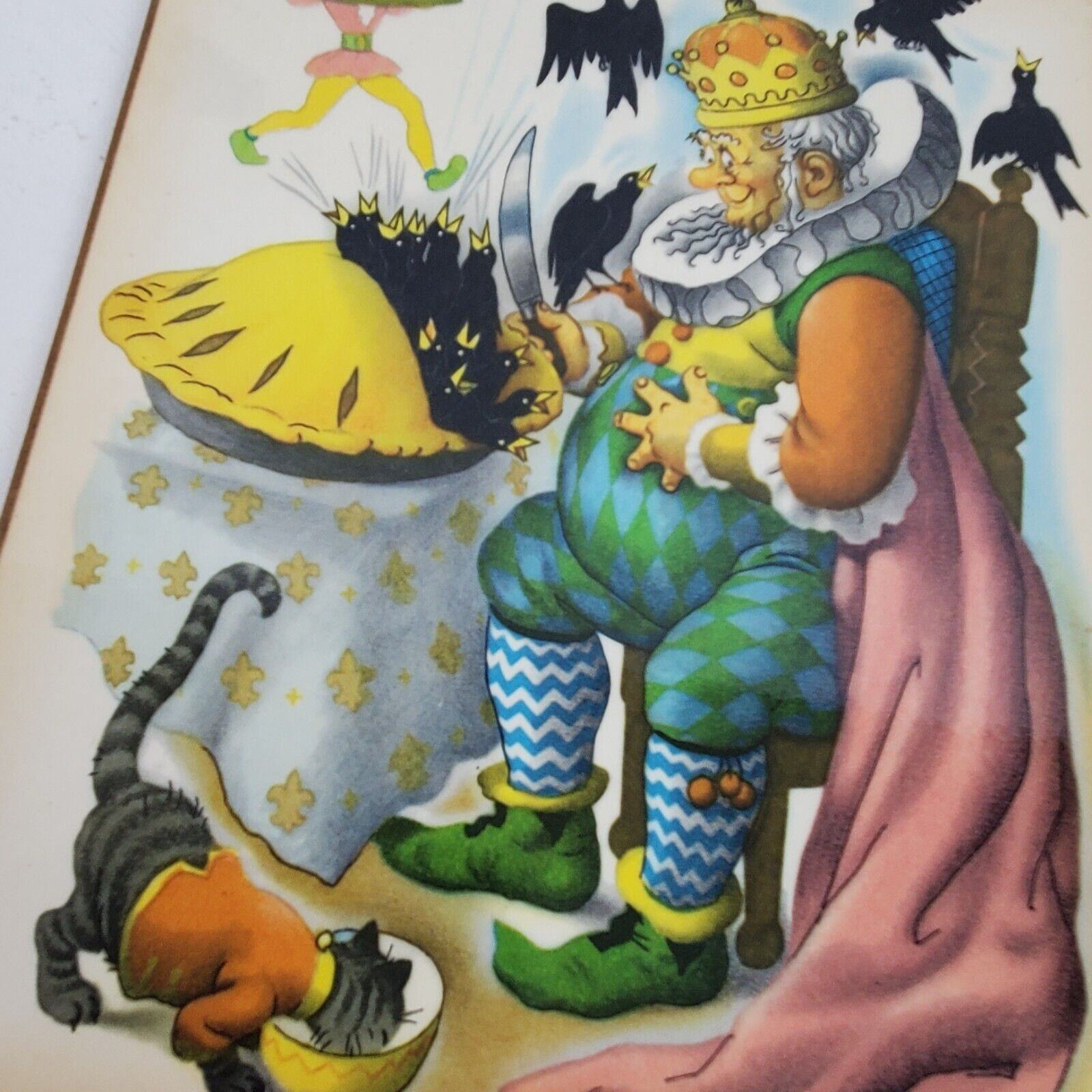 Vintage 1960s Nursery Rhyme Folk ART Print Laminated on Board 9.5x8 Inch (#03)