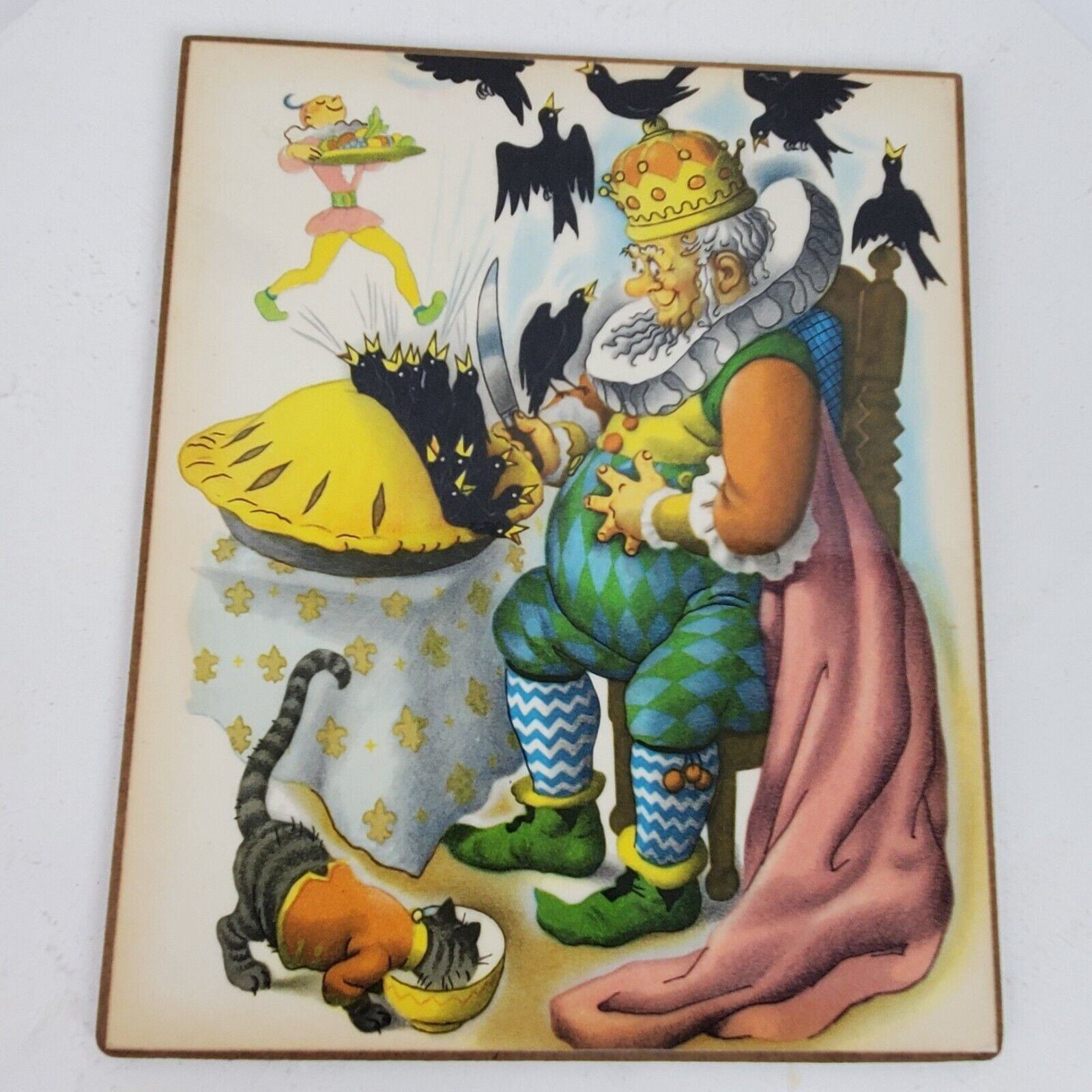 - Vintage 1960s Nursery Rhyme Folk ART Print Laminated on Board 9.5x8 Inch (#03)
