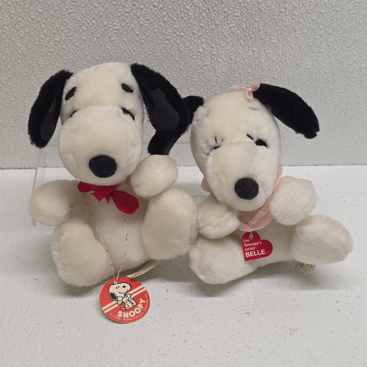 - Vintage 1968 Plush Snoopy & Sister Belle 6" Set With Hang Tags