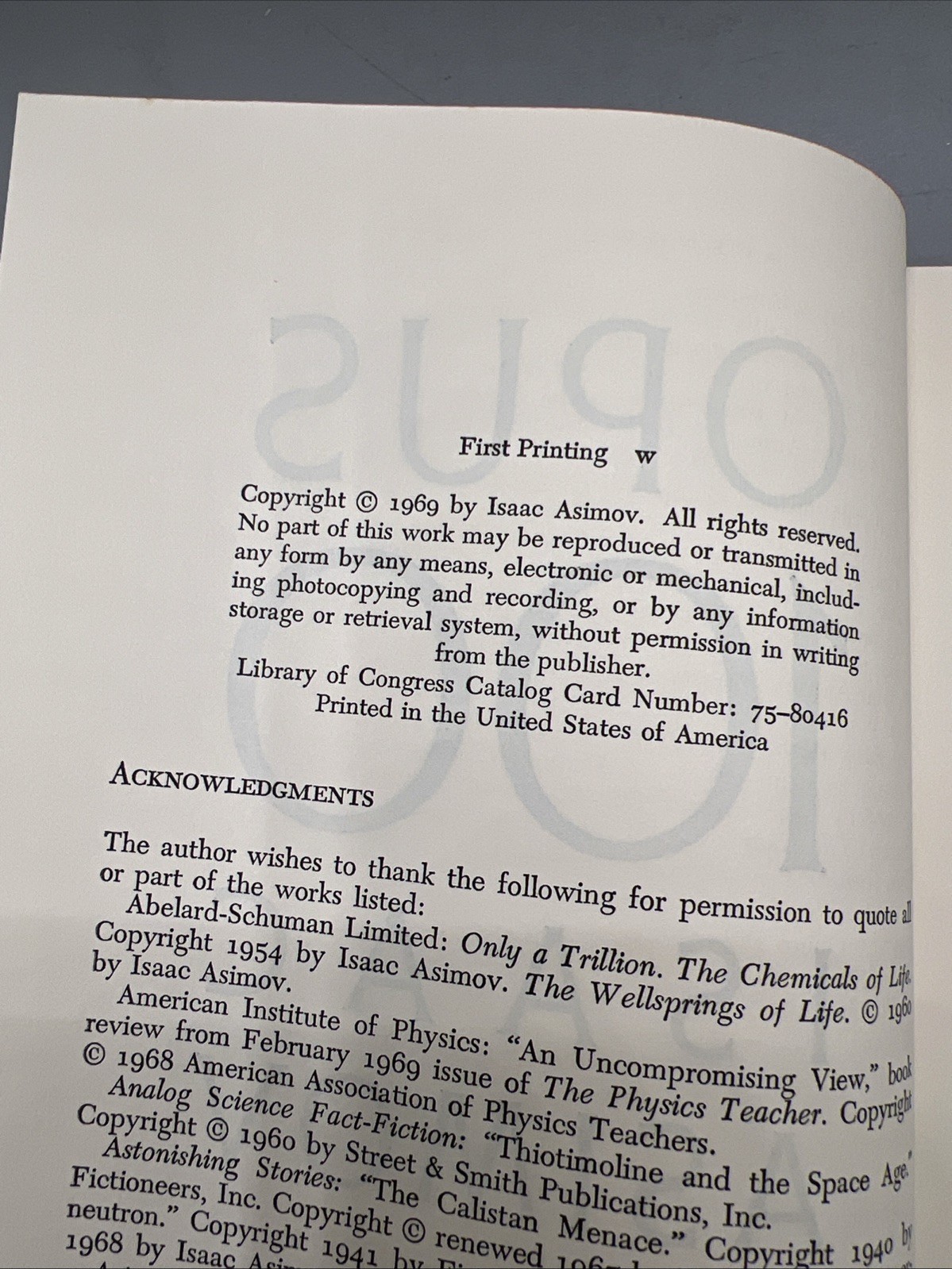 - Vintage 1969 1st Edition 1st Printing Hardcover OPUS 100 by Isaac Asimov