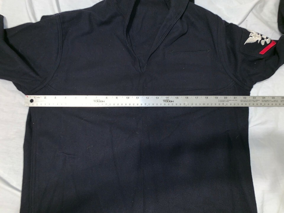 Our MILITARY TOPS are 100 percent Authentic US NAVY CRACKER JACK JUMPER , we take pride in selling some of the most Authentic Military Gear known in the Industry, Each Item has a size Label in each one of them , However we go one extra step and provide exact measurements in our pictures, we provide measurements for the Chest, arm length, and length. We wash each Item Twice, we will list every defect in our Auction. Each Top has been Inspected and although some have minor issues we pride our sales on showing every Inch in our pictures. Thank you for looking at our Store, we have sold over 10,000 Assorted Military Jackets, Tops, and Shirts, and have feedback from our customers to back up our quality, please take a quick minute to check out our feedback for the Military Gear we have sold.