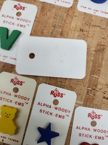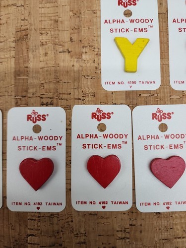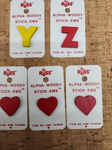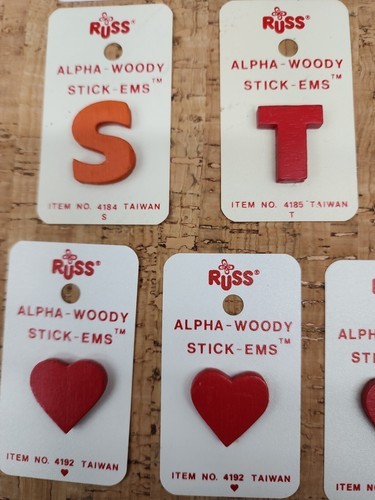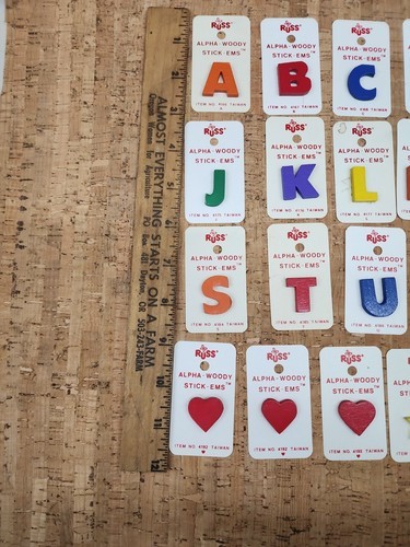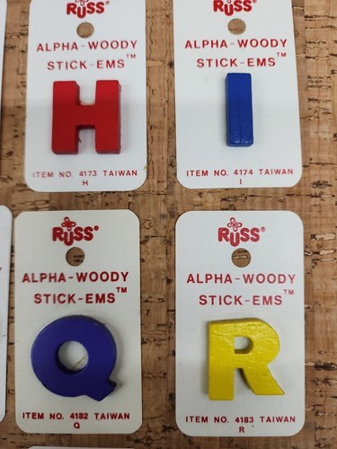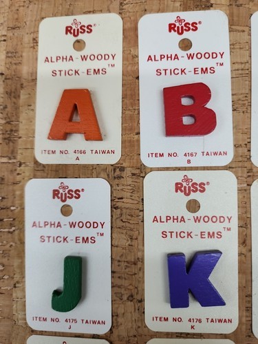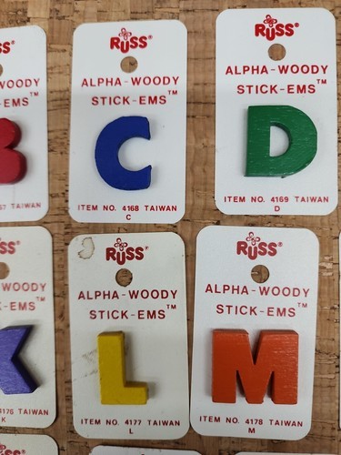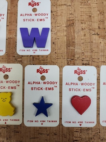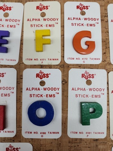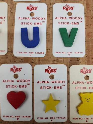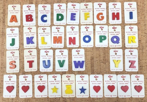 Vintage 1970s 1" RUSS ALPHA - WOODY STICK-EMS 35 Alphabet and Shapes Crafting