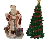 Primary image for Vintage 1970s Resin Christmas Decor Santa and Christmas Tree (Enesco)