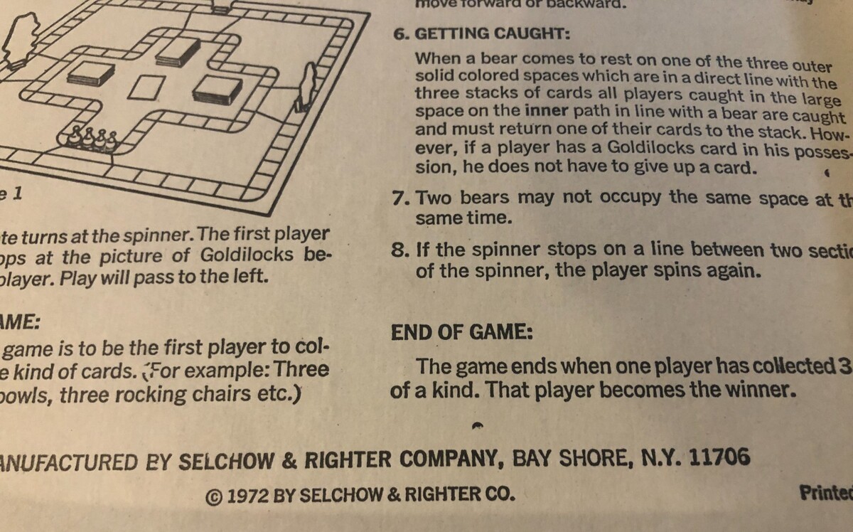 Vintage 1973 Selchow and Richter GOLDILOCKS and The Three Bears Board Game