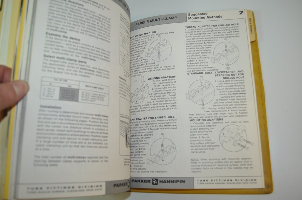 this is a great volume - displaying the engineering and specifications of Parker components. this is complete and in very good condition. Most all pages are completely three ring punched and good. there may be a few pages that are loose.